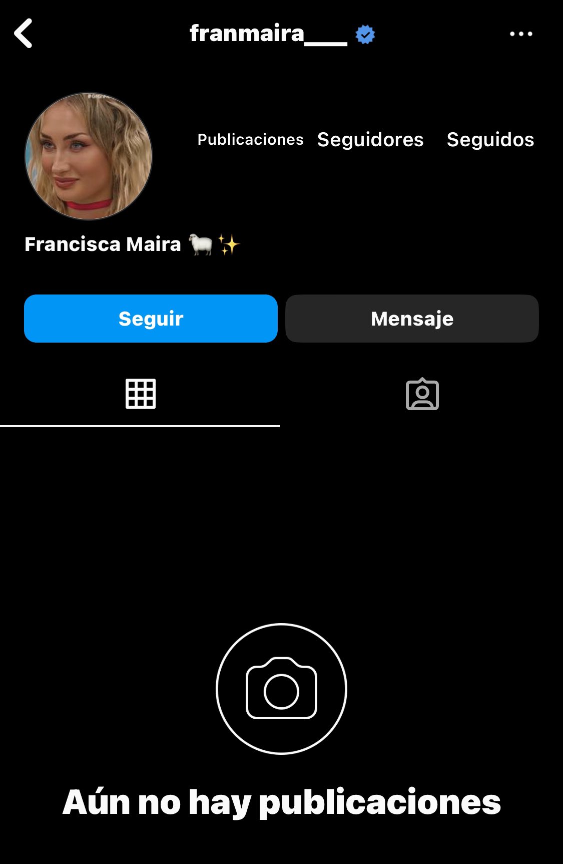Hace pocos minutos usuarios reportaron que la cuenta de Francisca Maira en Instagram estaría cerrada.