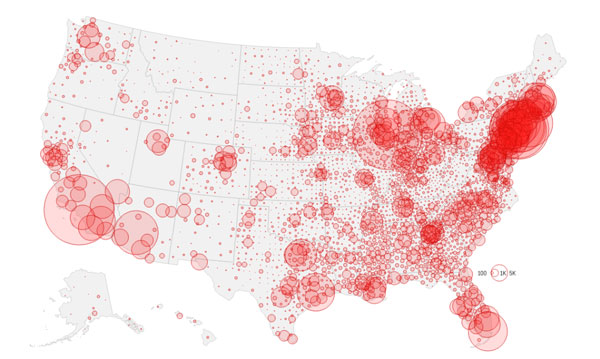 Los totales incluyen casos de los 50 estados, el Distrito de Columbia y otros territorios de EE. UU., Así como casos repatriados.