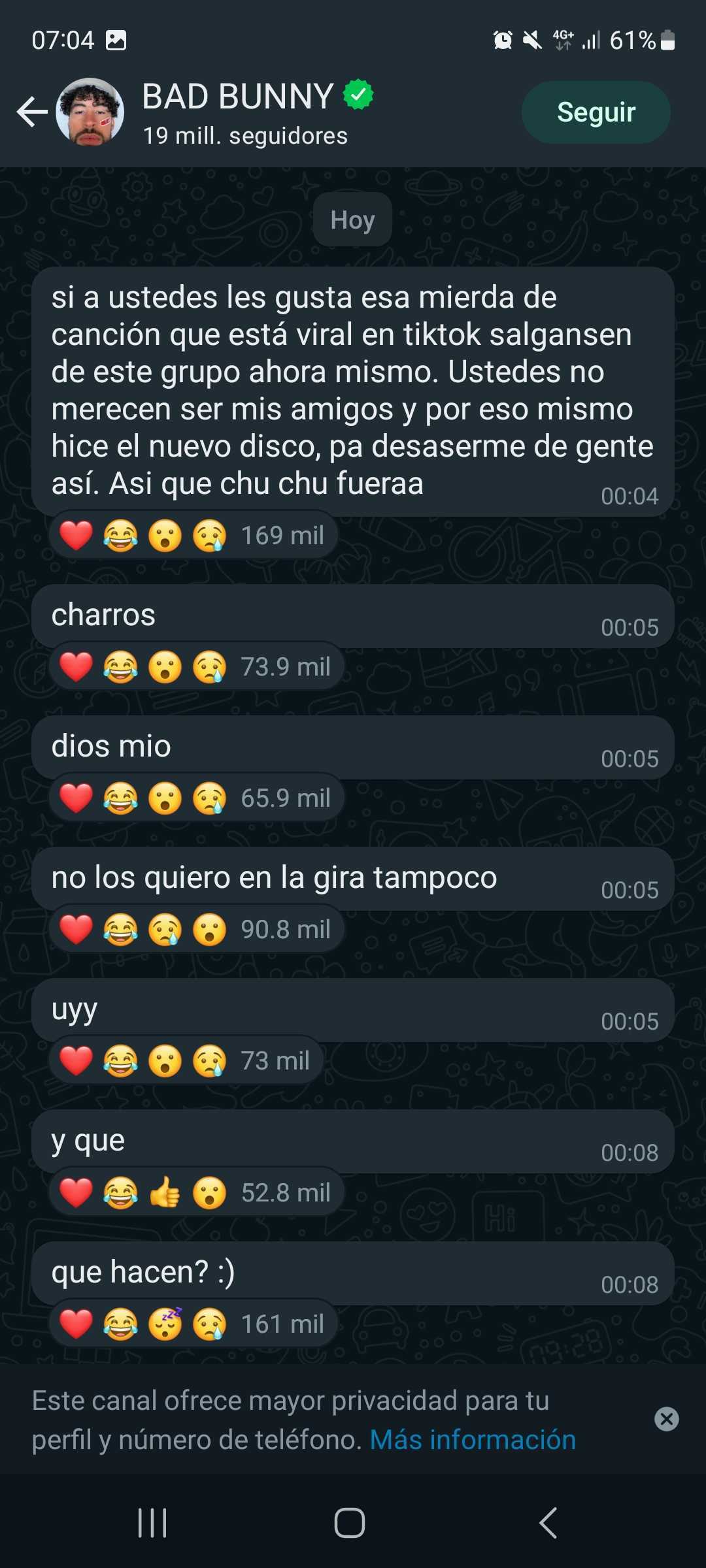 Los seguidores y seguidoras de Bad Bunny se despertaron con un furioso mensaje durante este martes. El artista puertorriqueño utilizó su canal de difusión en WhatsApp para lapidar una canción que fue creada con inteligencia artificial y que está causando impacto en el mundo.