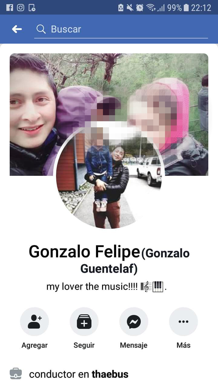 El nombre del chofer sería Gonzalo Guentelaf, quien fue identificado por una usuaria de Facebook, la que envió su foto de perfil.