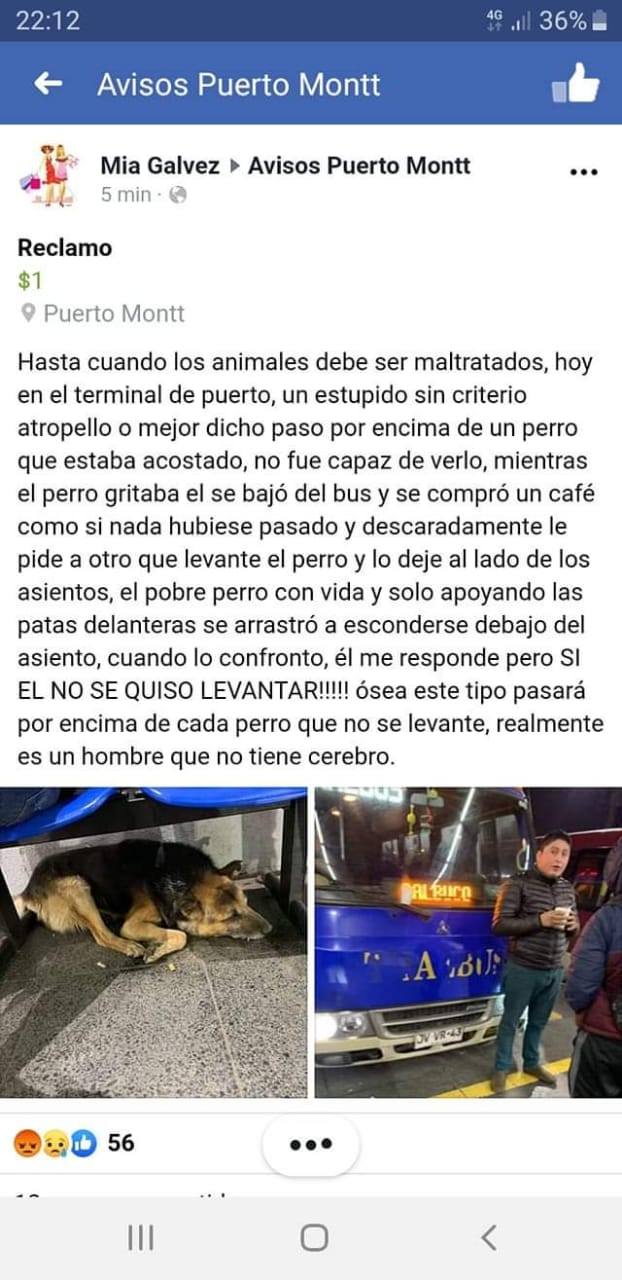 A través de una página la de Facebook RTV+ Noticias se comenzó a viralizar la denuncia contra un chofer de buses de pasajeros de un recorrido Puerto Montt - Calbuco.