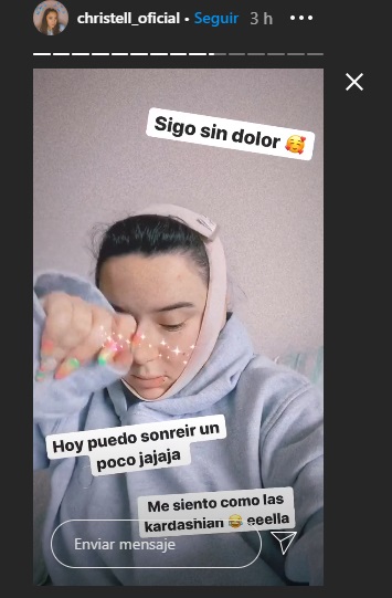 A través de las historias de la red social, mostró el resultado. “Hoy puedo sonreír un poco. Me siento como las Kardashian... aplico hielito cada cierto rato y me hago masajitos. Pero como dije, cero dolor”, sostuvo.