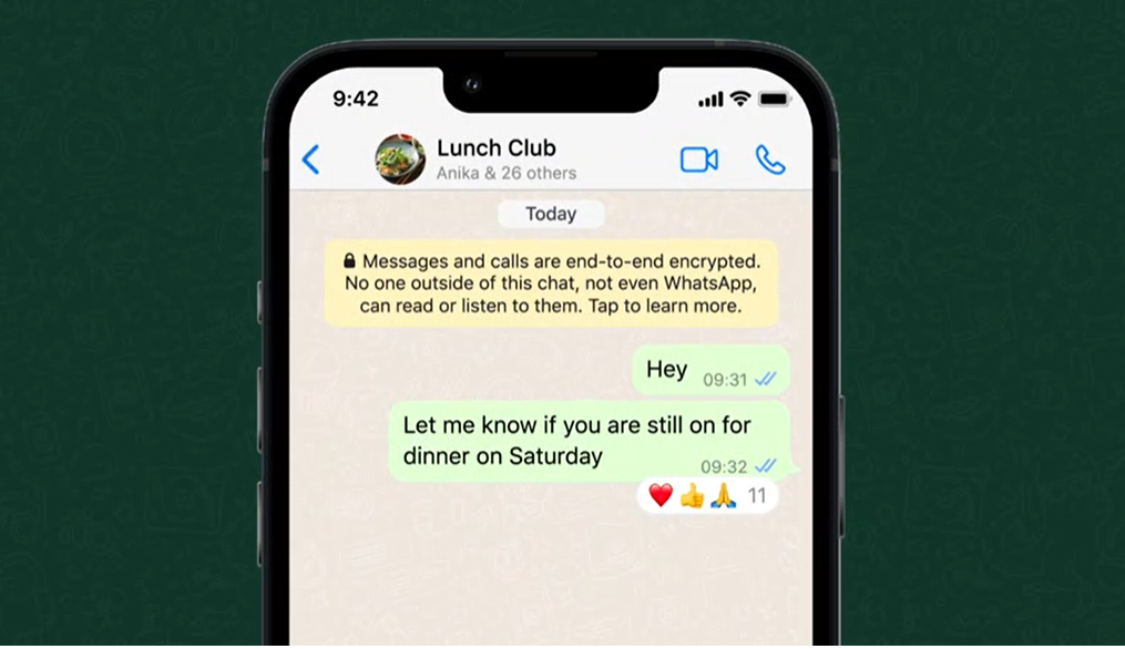 Las reacciones podrán realizarse en mensajes, fotos, videos y audios, incluyendo los chats grupales.