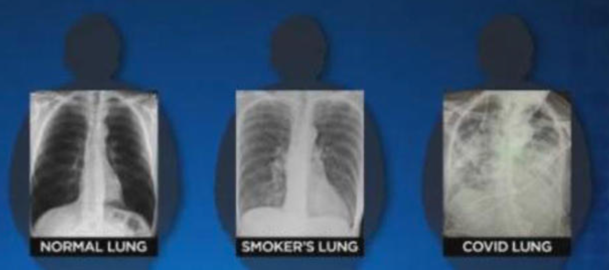 La doctora Brittany Bankhead-Kendall, cirujana y profesora asistente de la Universidad Técnica de Texas, compartió en Twitter radiografías de pulmones de pacientes normales, de fumadores y con COVID-19.