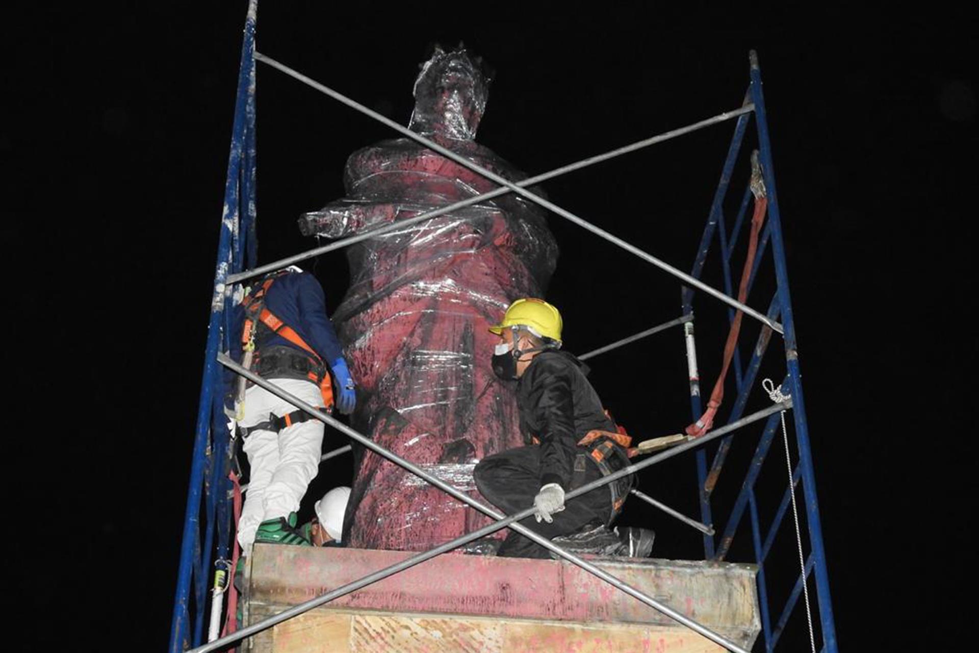 El gobierno optó por removerlas de sus pedestales luego de que grupos del pueblo misak protestaran en el lugar e intentaran sacarlas. Desde el Ejecutivo llamaron al diálogo. "Estos espacios de concertación permitirán entender, evaluar y concertar propuestas de resignificación o relocalización", indicaron.