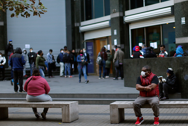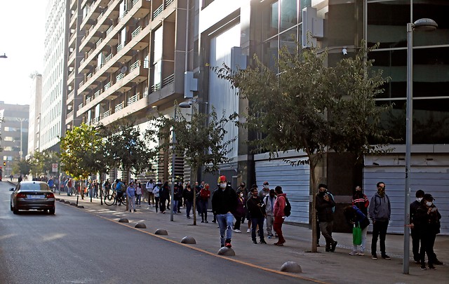 En la mañana de este viernes, se han registrado extensas filas en las afueras de las oficinas de la AFC en Santiago, debido a la necesidad de muchas personas de tramitar su Seguro de Cesantía.