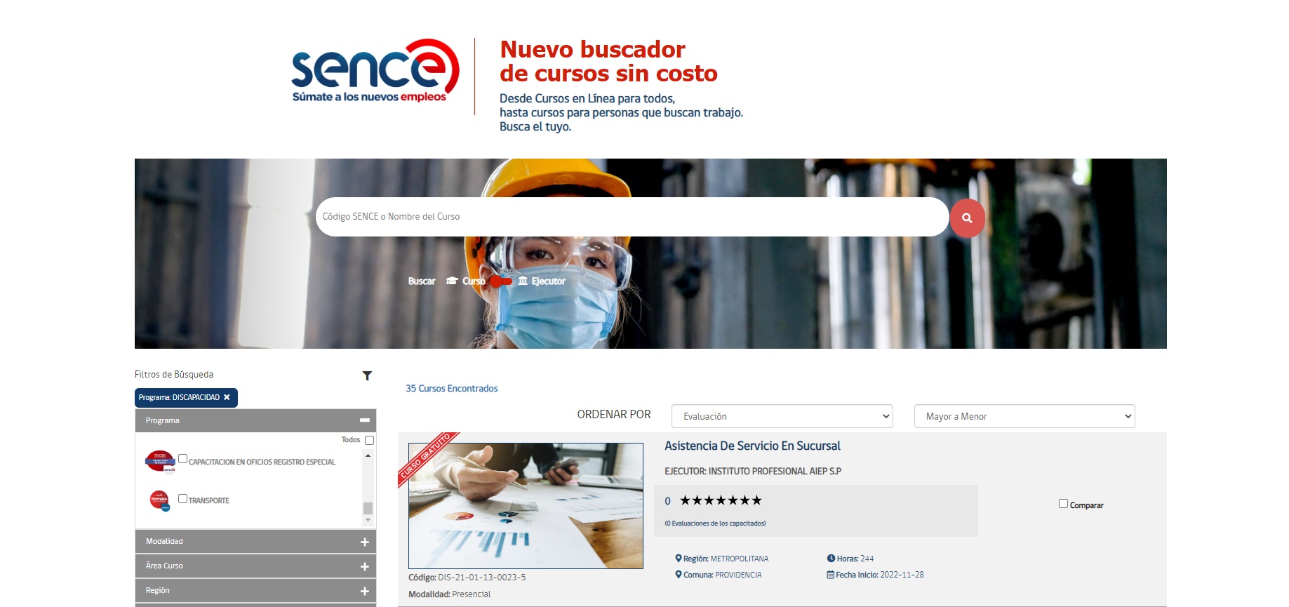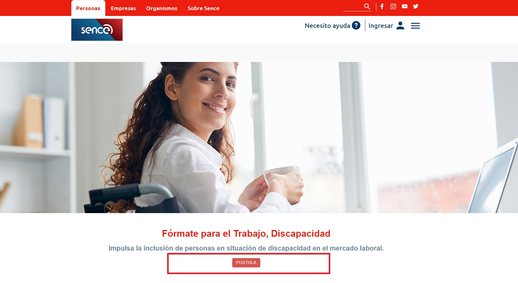 Primero, debes pinchar el siguiente enlace, que te llevará a la página oficial del Sence, en su categoría de discapacidad.