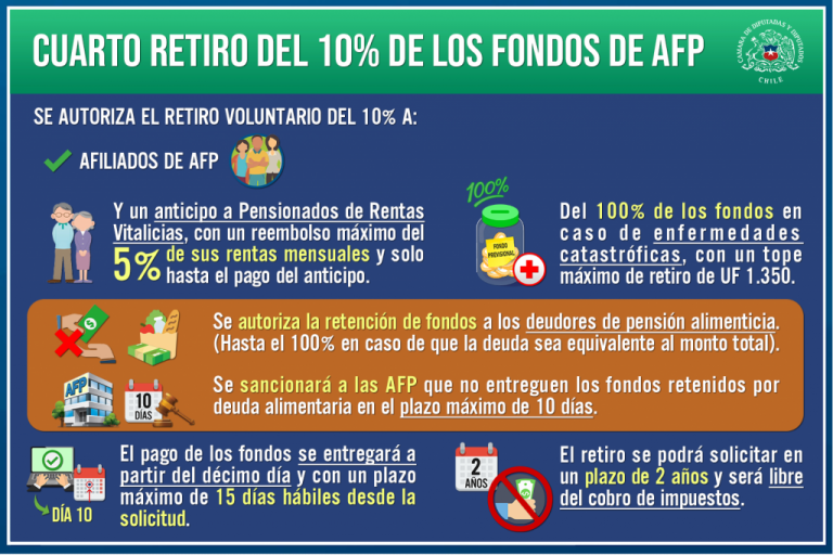 El texto, aprobado por la Cámara el pasado martes, considera que el nuevo retiro sea sin impuestos y con adelanto a las rentas vitalicias. Además, contempla que pueda ser efectuado en un plazo de dos años y no de uno, como fueron los anteriores.