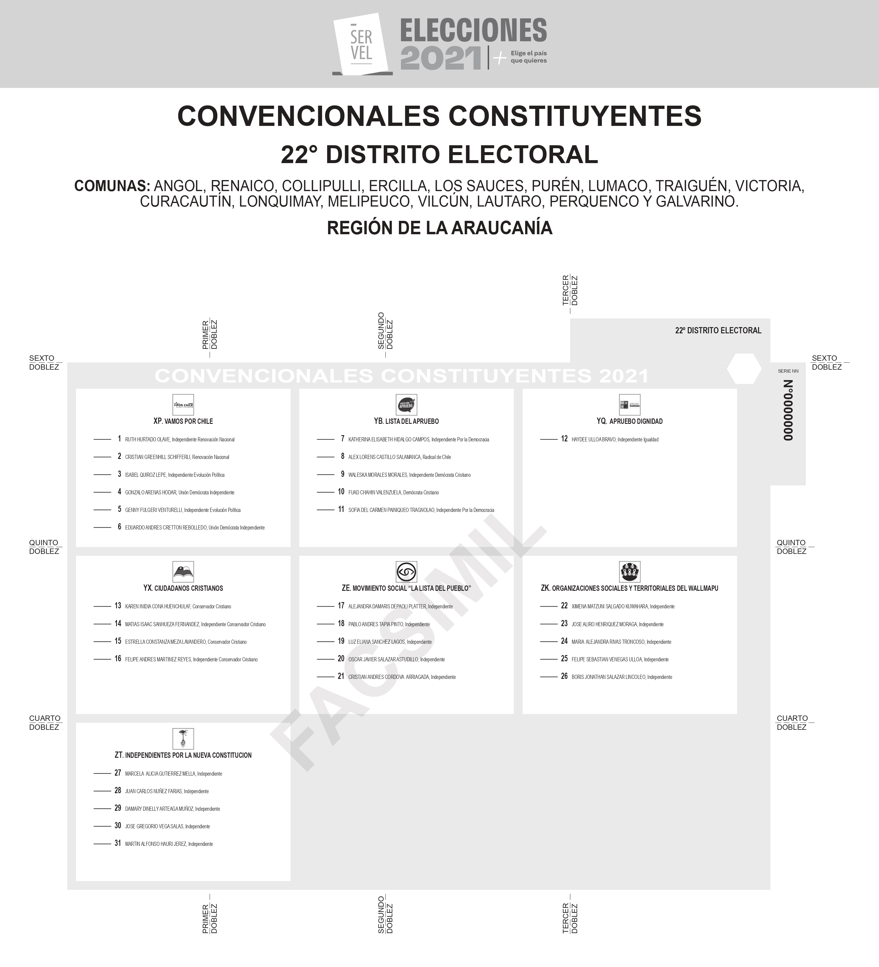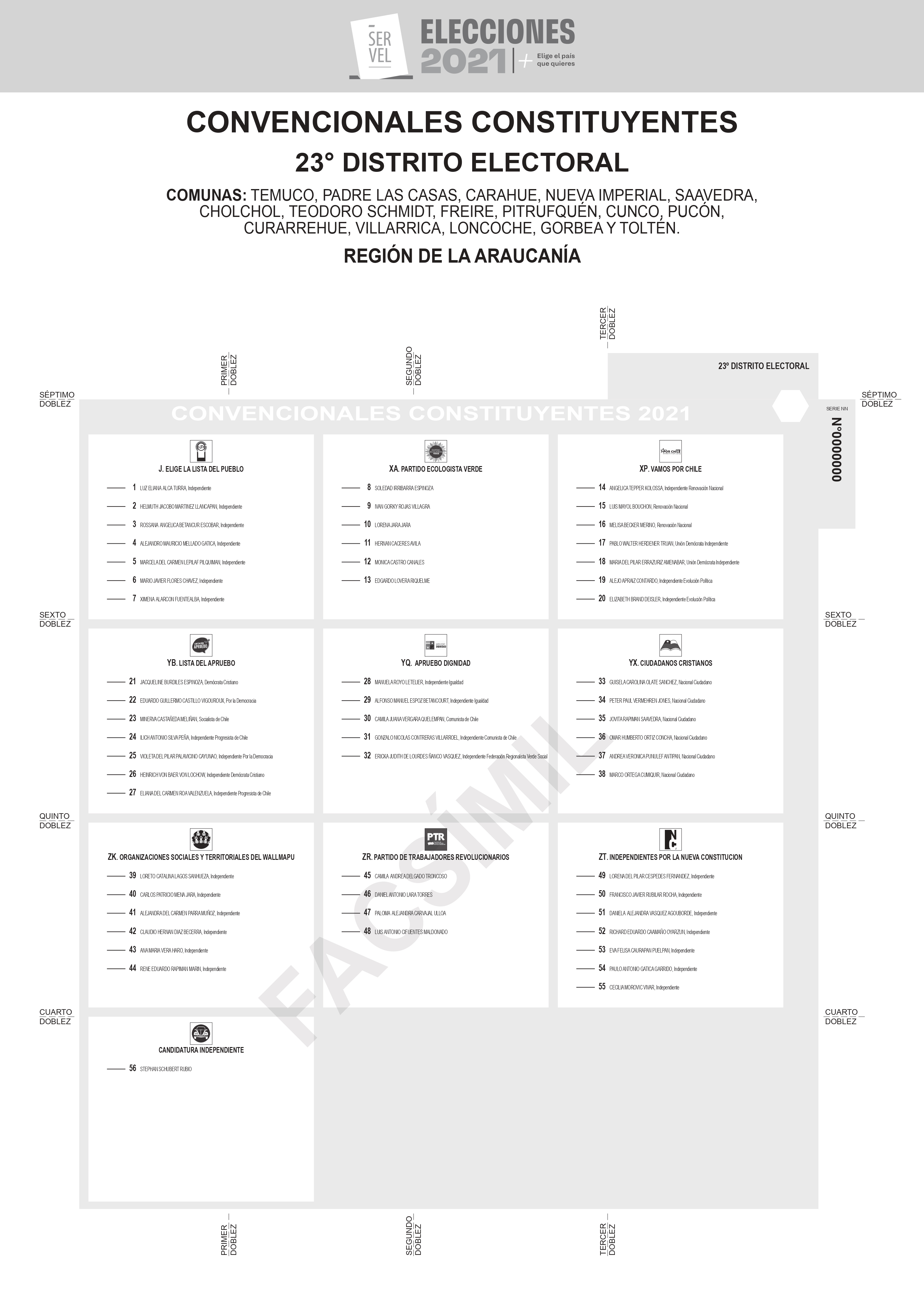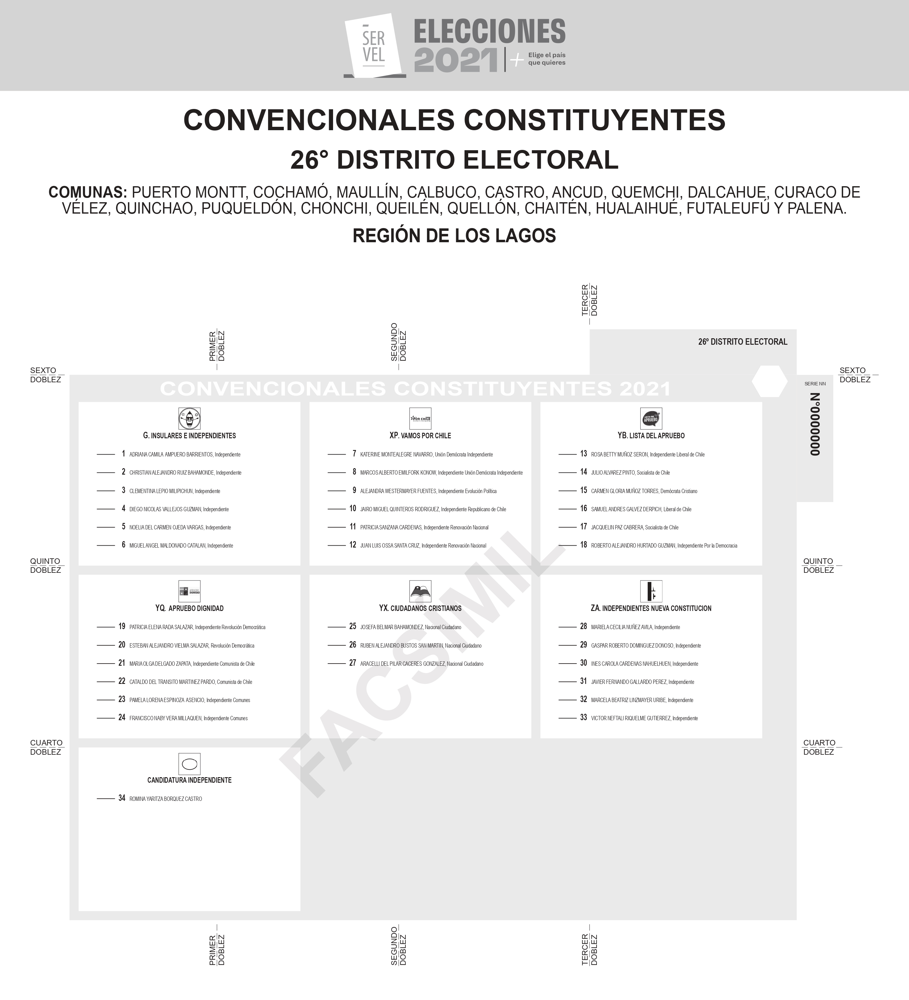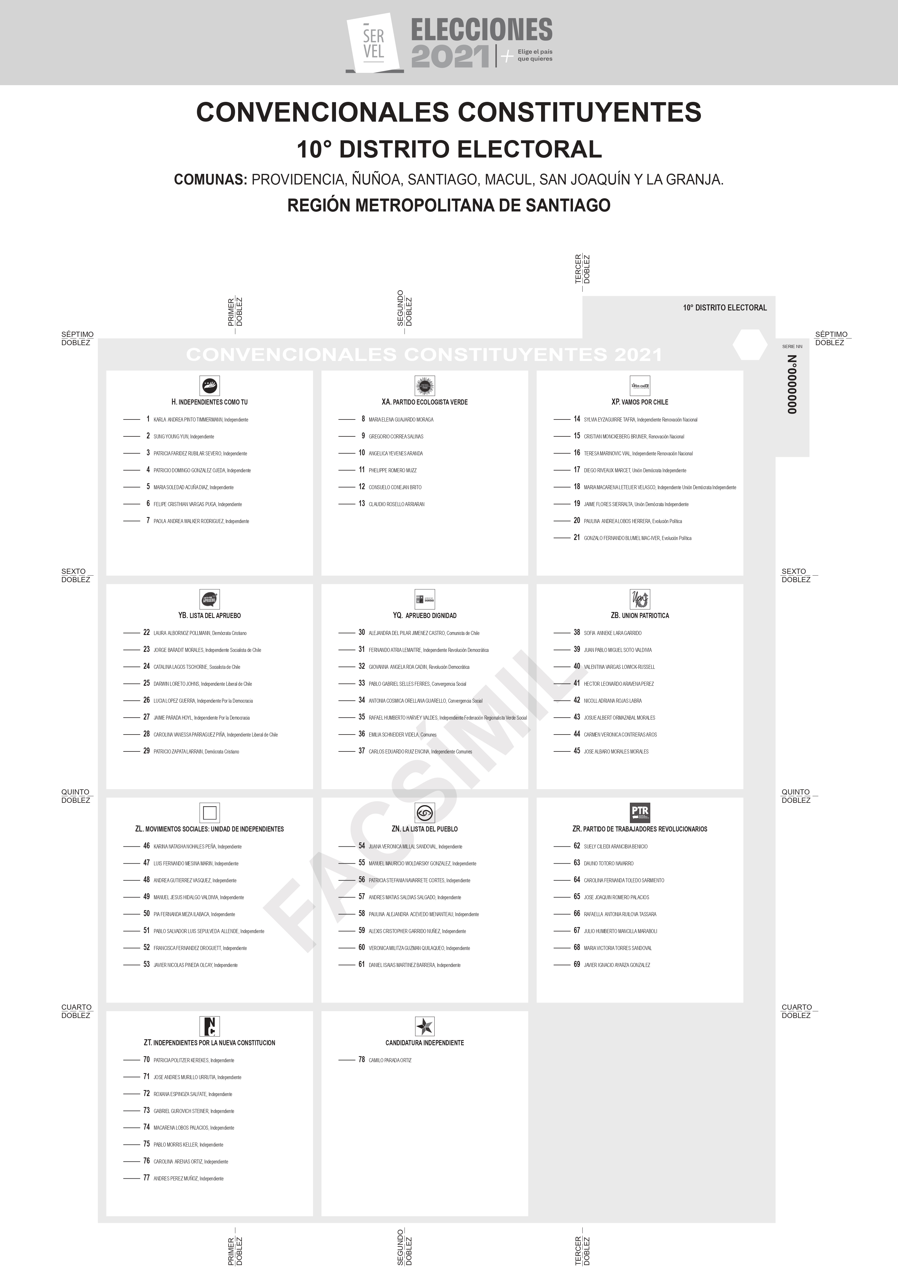 Este sábado y domingo se realizarán las elecciones para elegir, entre otros cargos públicos, a los integrantes de la Convención Constitucional. Acá te mostramos cómo será el facsímil en el que deberás marcar la elección de tu representante constituyente.