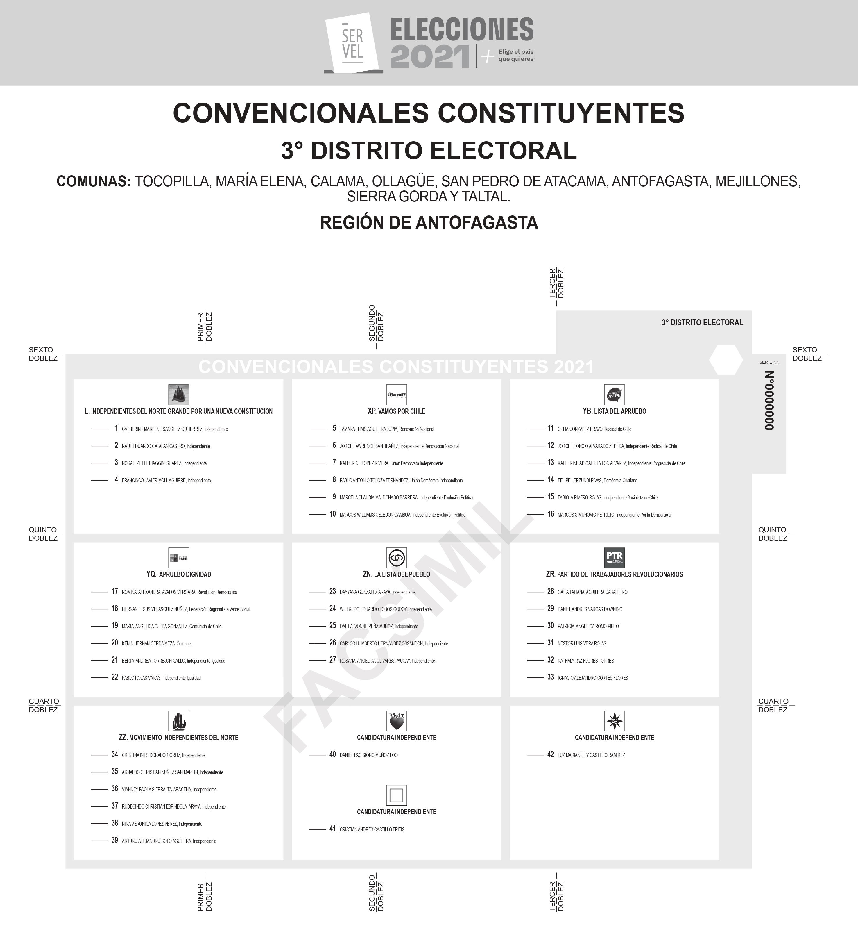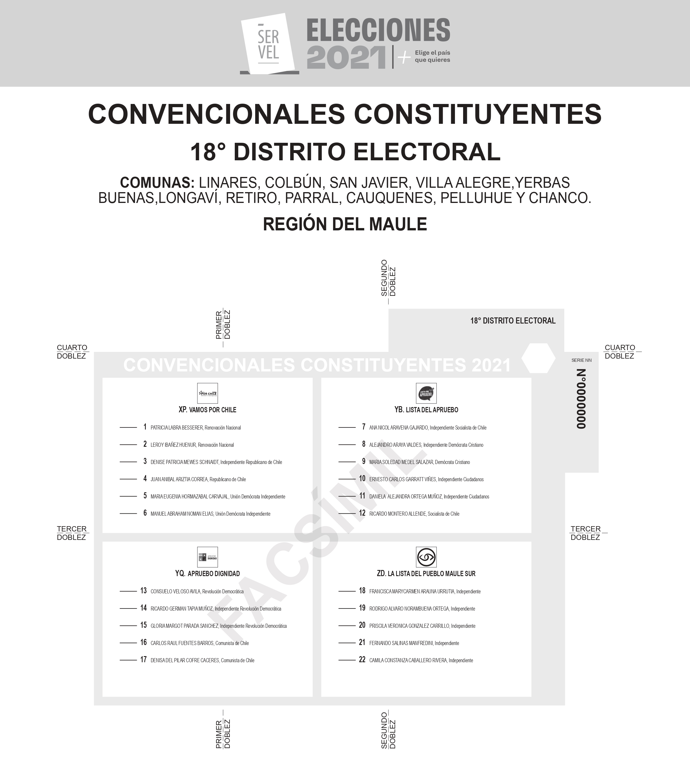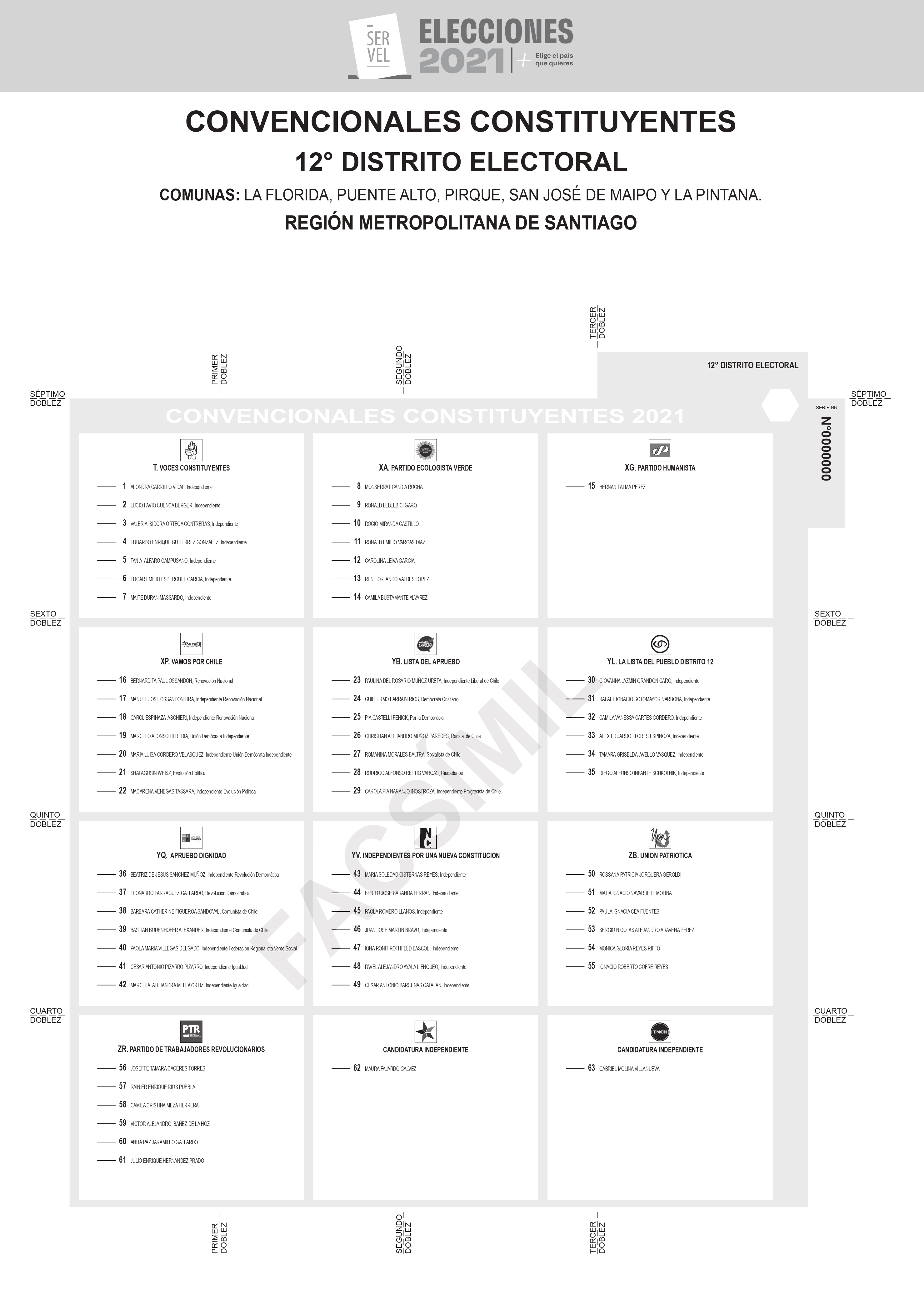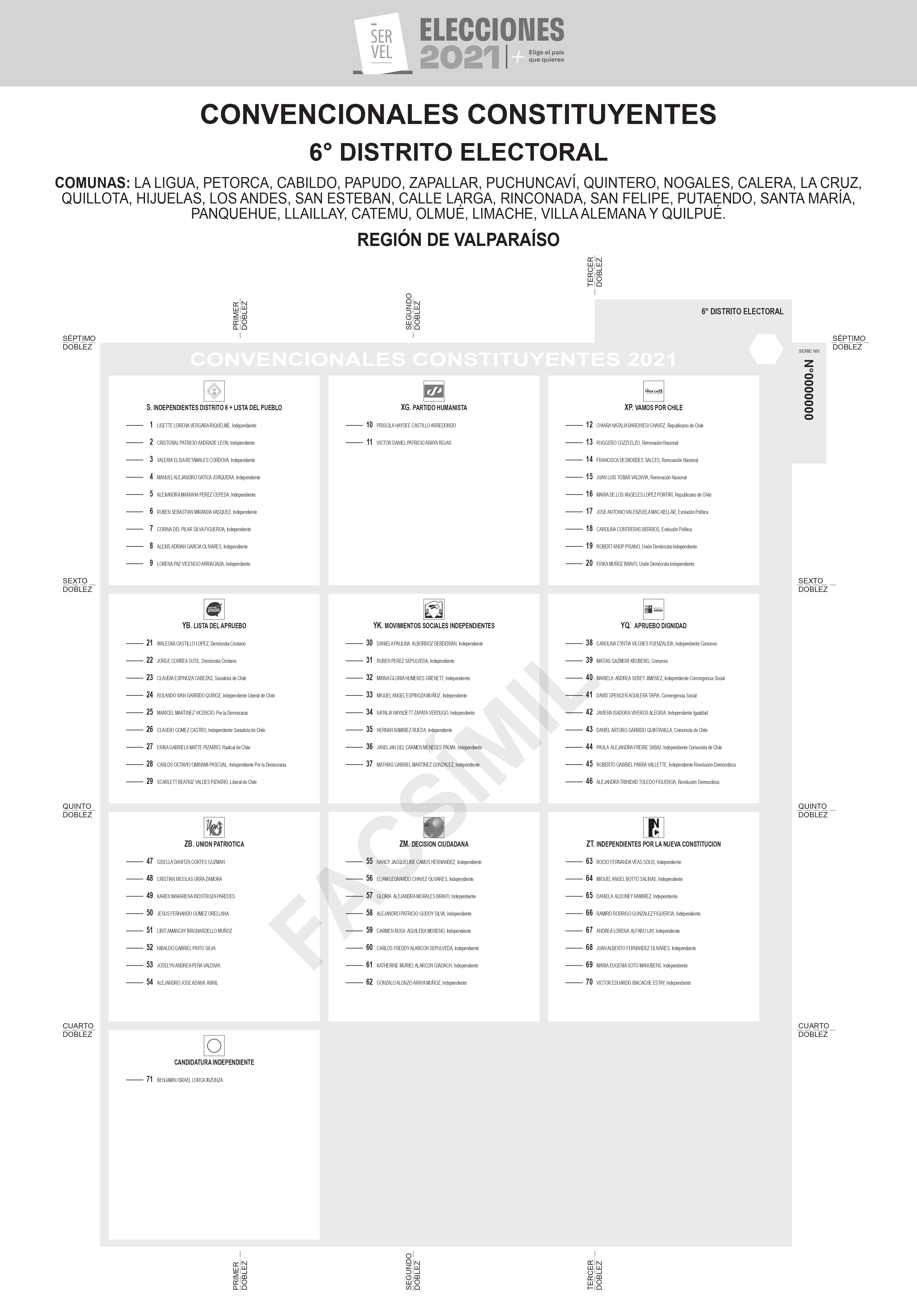Este sábado y domingo se realizarán las elecciones para elegir, entre otros cargos públicos, a los integrantes de la Convención Constitucional. Acá te mostramos cómo será el facsímil en el que deberás marcar la elección de tu representante constituyente.