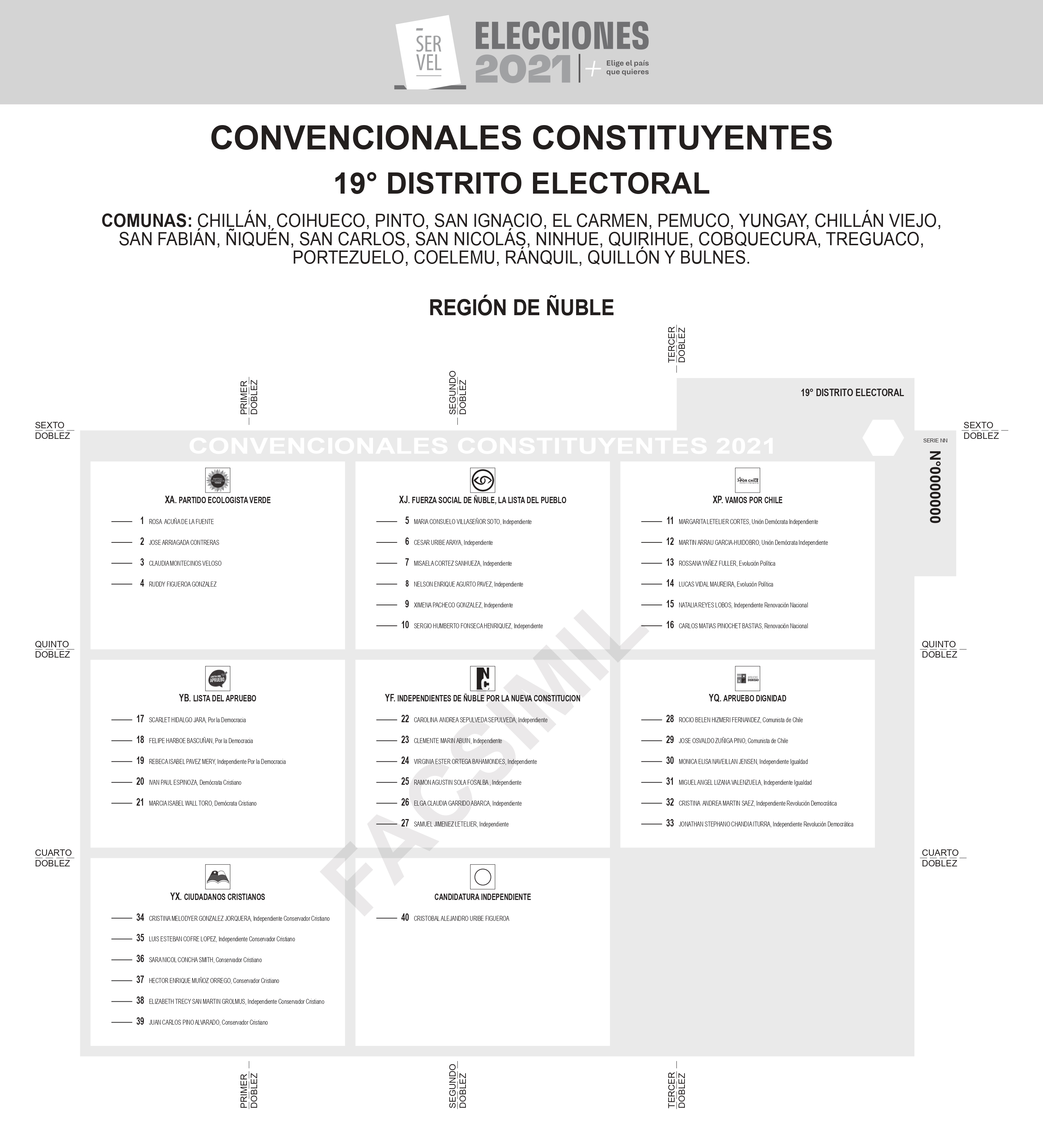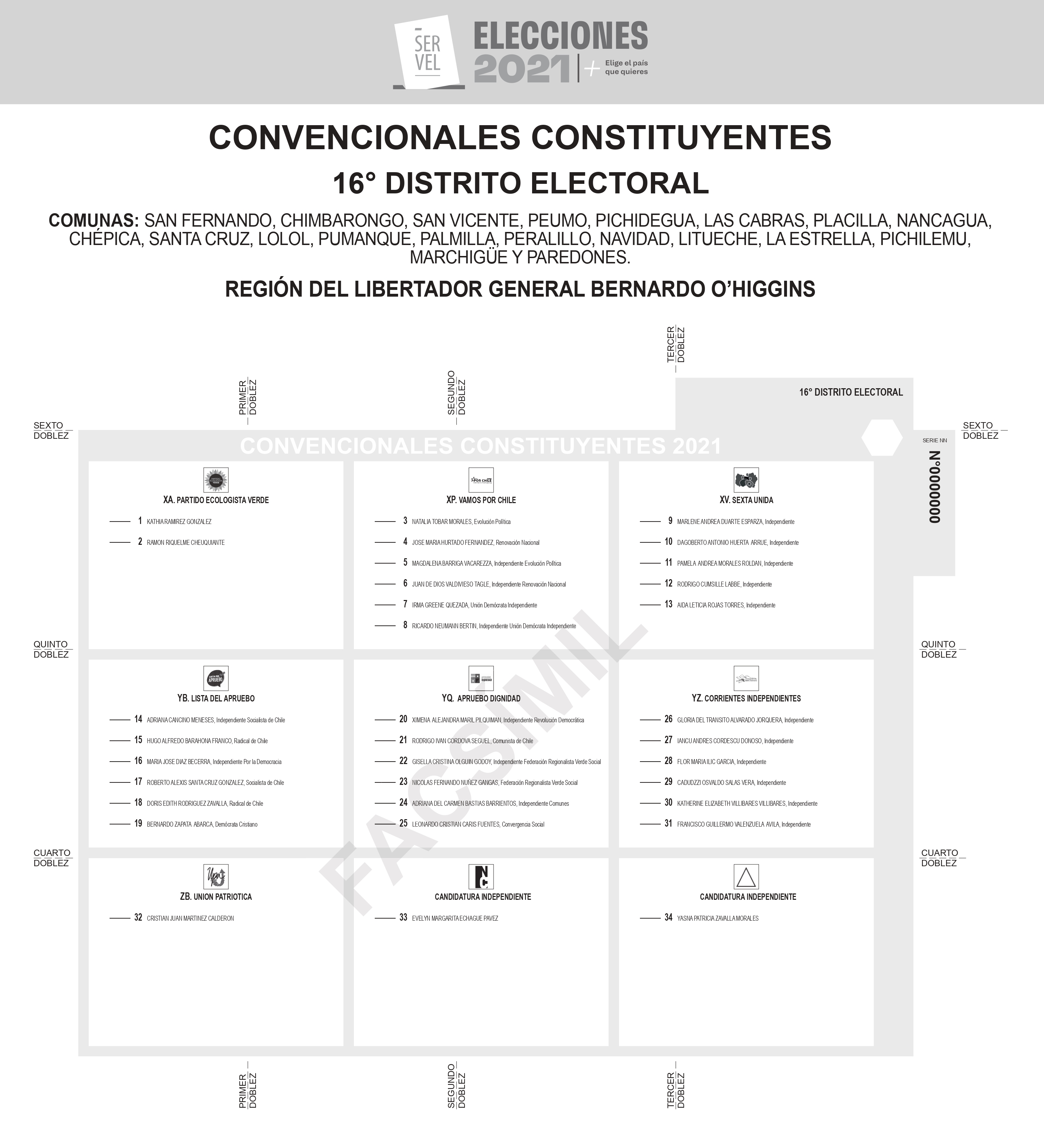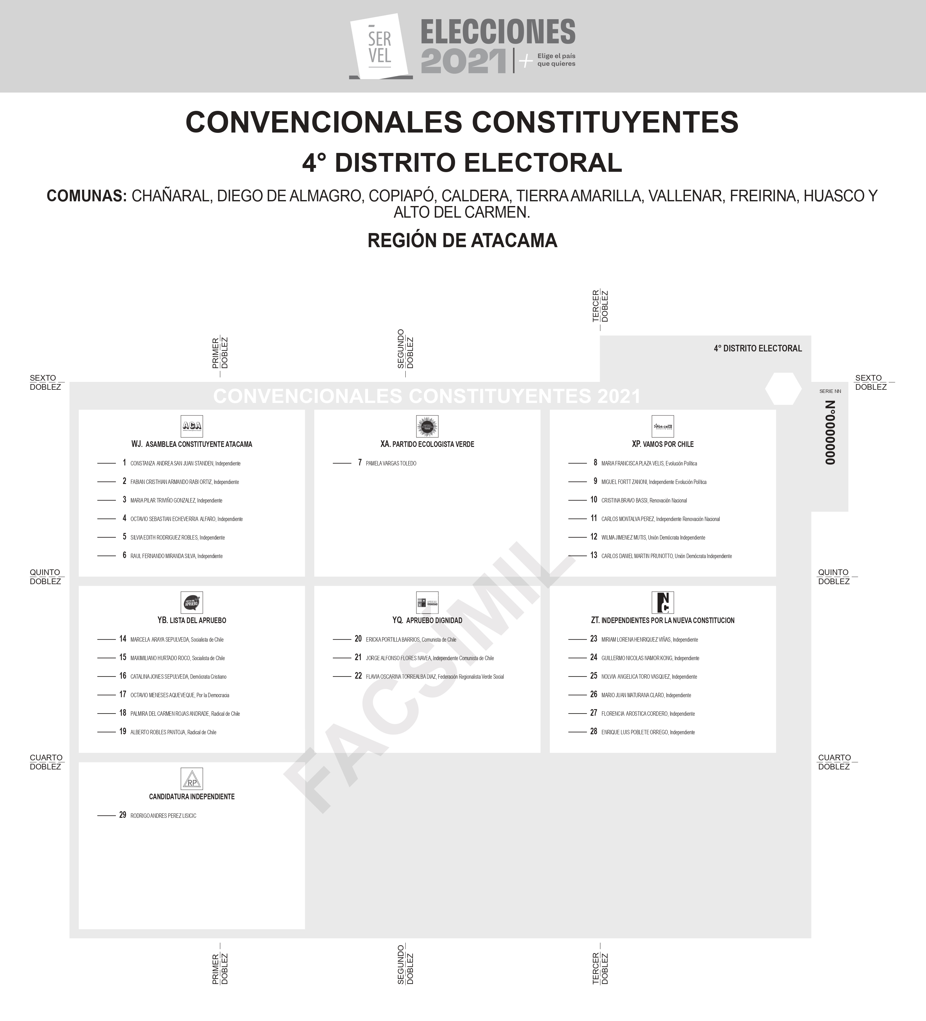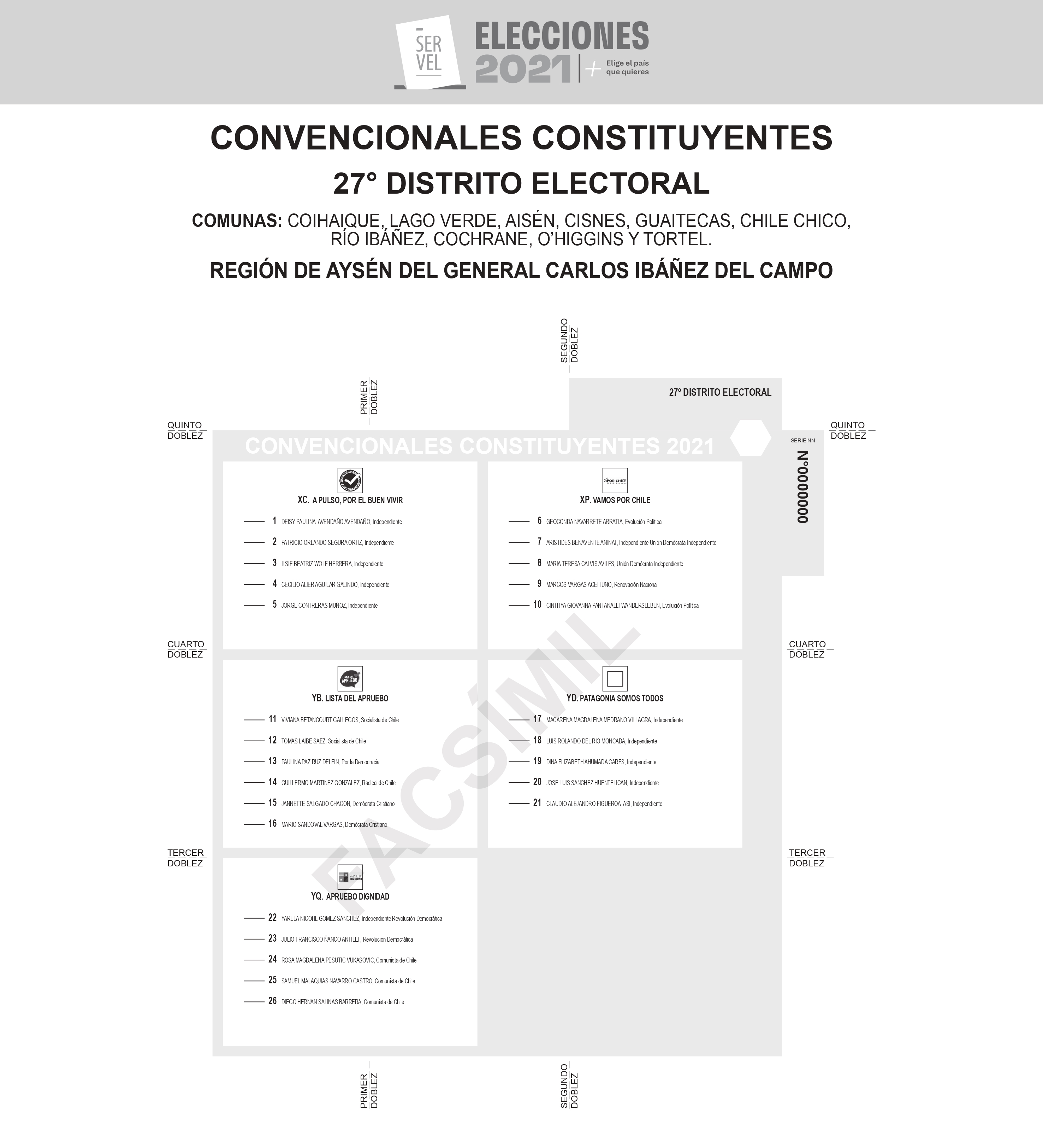 Este sábado y domingo se realizarán las elecciones para elegir, entre otros cargos públicos, a los integrantes de la Convención Constitucional. Acá te mostramos cómo será el facsímil en el que deberás marcar la elección de tu representante constituyente.