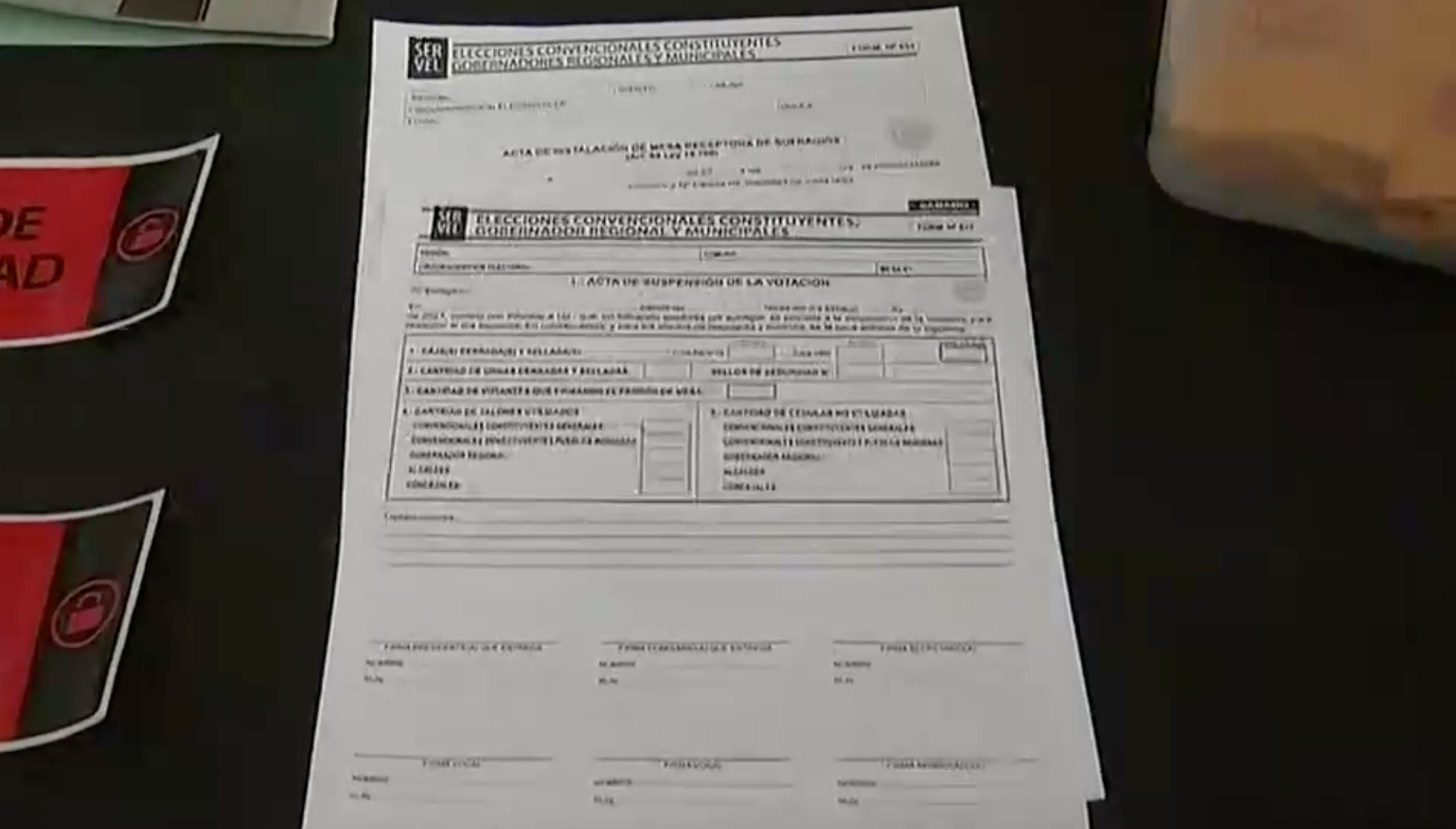 Por encima de ésta, se instalarán a los costados los sellos de seguridad grises que poseen un número único y que tendrán que ser firmados por los vocales de mesa.