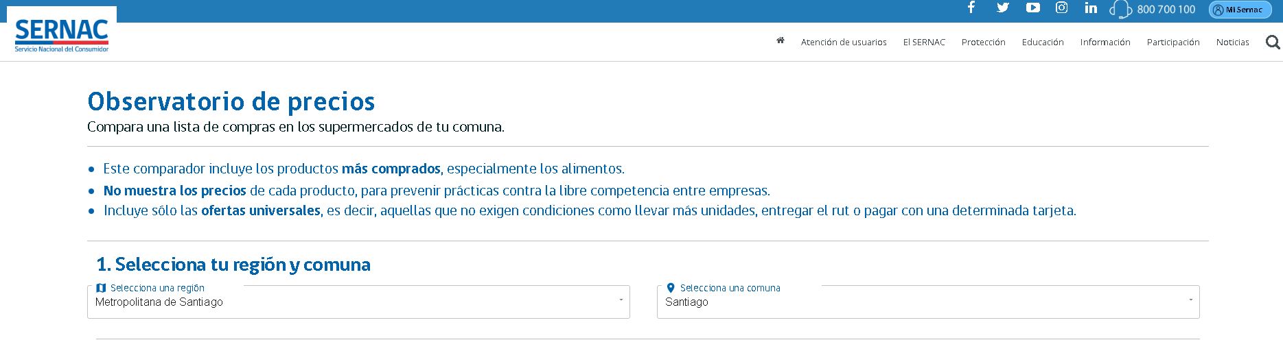 En ese sentido, el Servicio Nacional del Consumidor (Sernac) dispuso para la población el Observatorio de Precios, plataforma web que permite realizar comparaciones en los precios de distintos productos en supermercados de todo el país, sean regionales o nacionales.