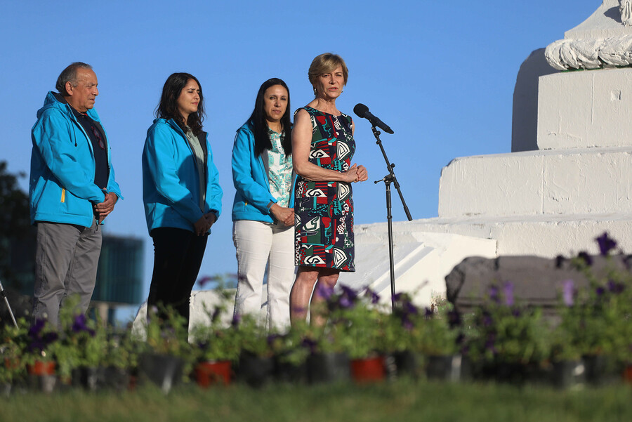 Fue ella misma quien llegó durante esta jornada a terminar las plantaciones en la denominada Plaza Dignidad.