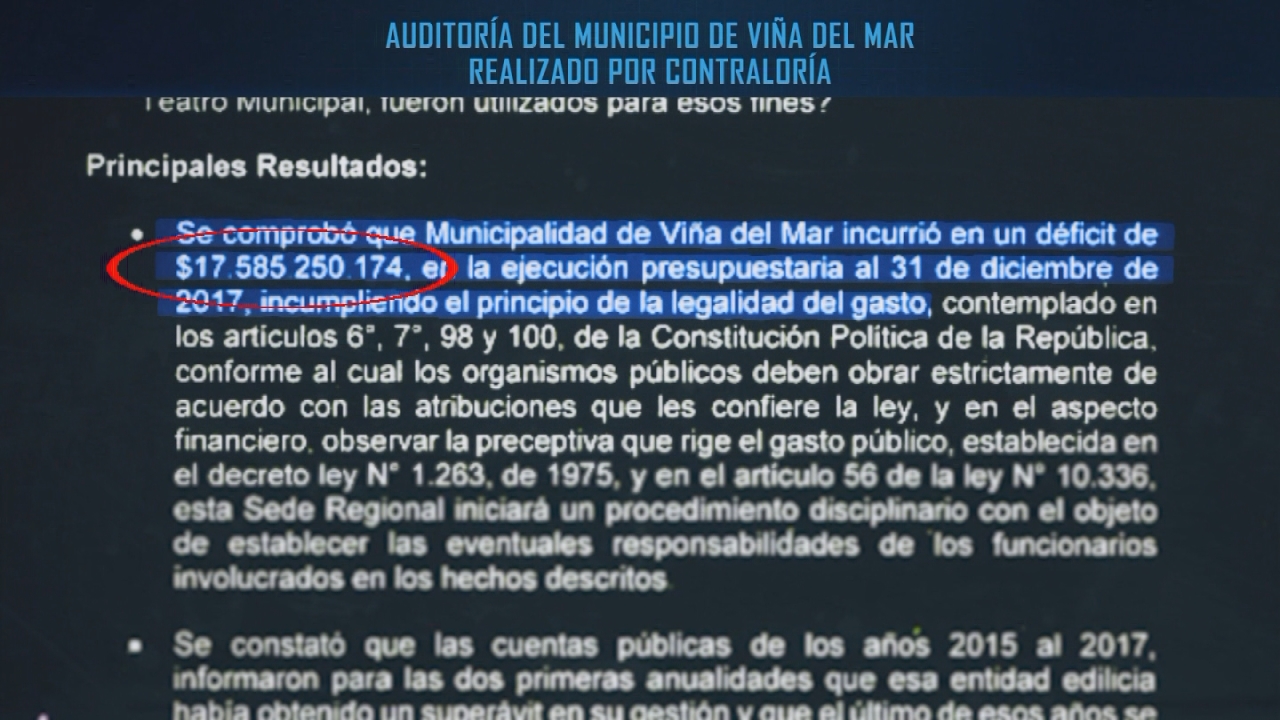 La auditoría realizada por la Contraloría a la Municipalidad de Viña del Mar reveló a comienzos de este año que el déficit actual del organismo asciende a más de 17 mil millones de pesos.