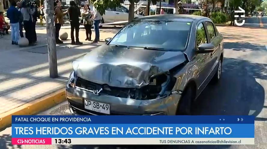 Un grave accidente se produjo en Avenida Los Leones en Providencia, donde una mujer fue arrollada por otro vehículo colisionado por el móvil conducido por una persona que sufrió un infarto mientras se encontraba al volante.
