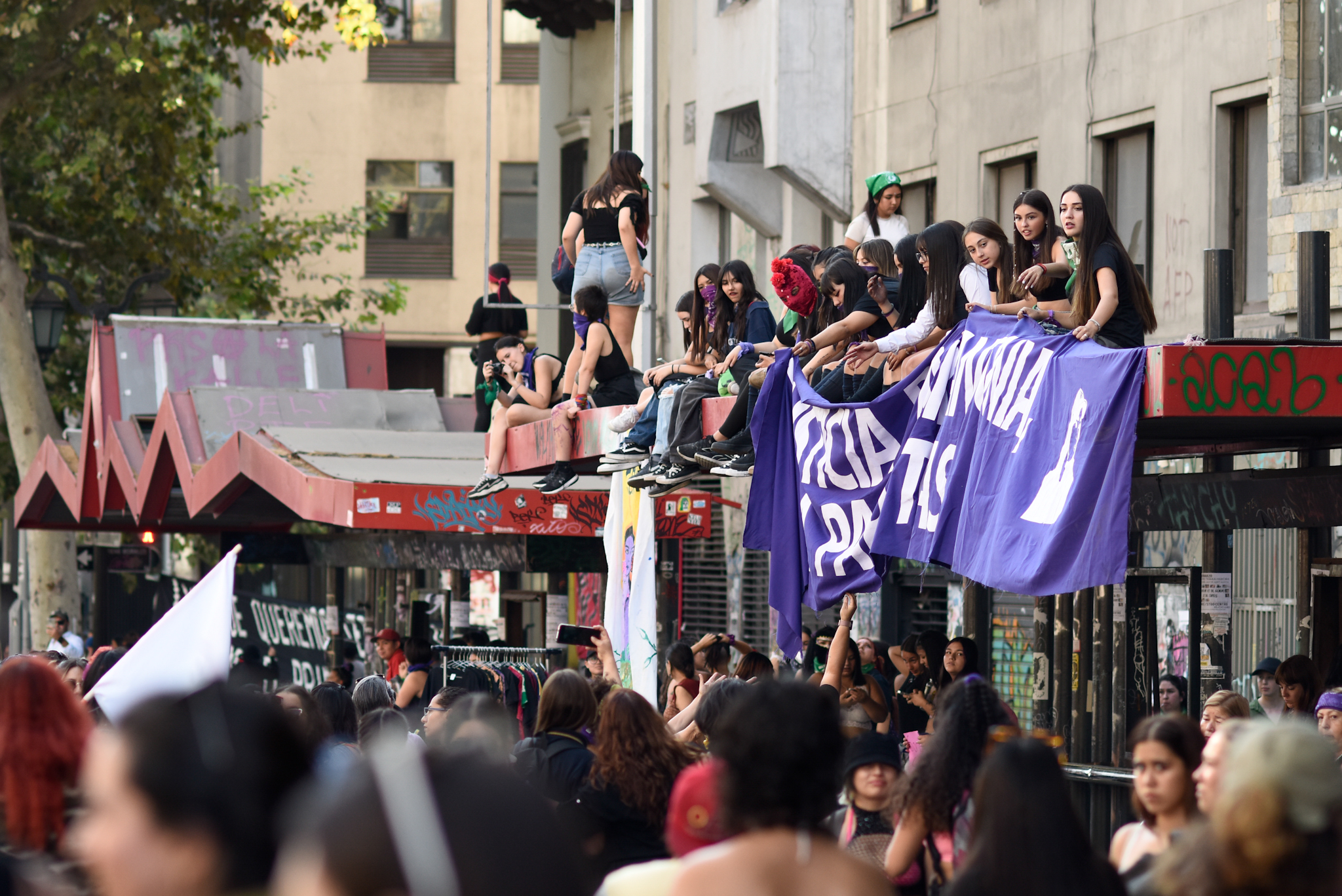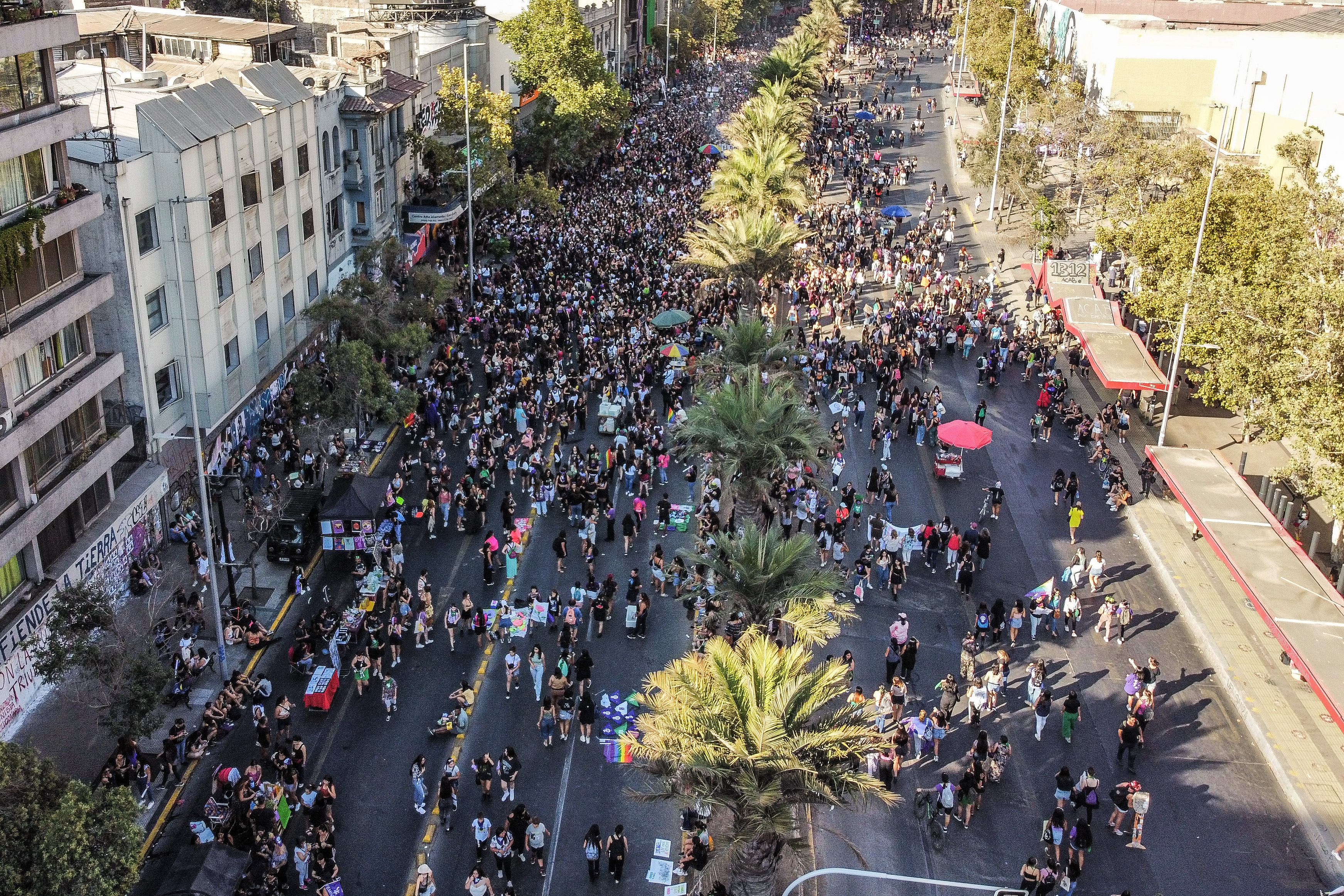 En el marco del 8M, miles de mujeres salieron a las calles para participar de la Gran Marcha por el Día de la Mujer en la Región Metropolitana. Representaciones artísticas, música y mucho color fueron parte de la histórica jornada que, lamentablemente, terminó empañada luego que un grupo de hombres agrediera a las marchantes, provocando la suspensión del acto de cierre.