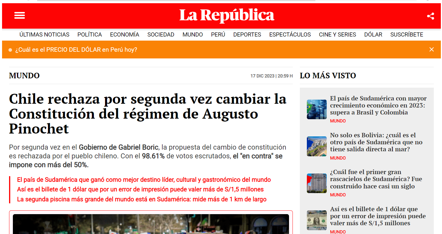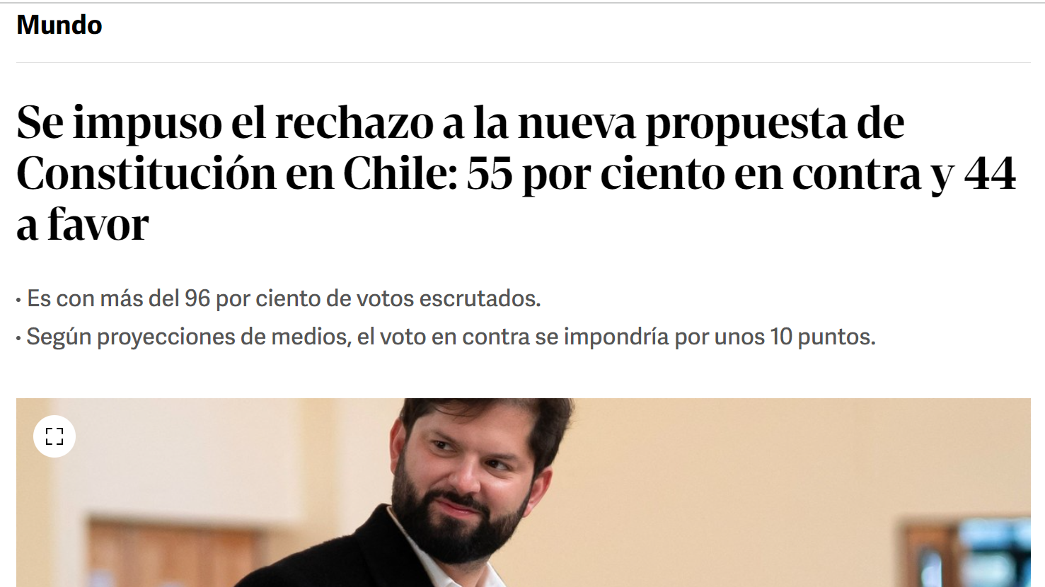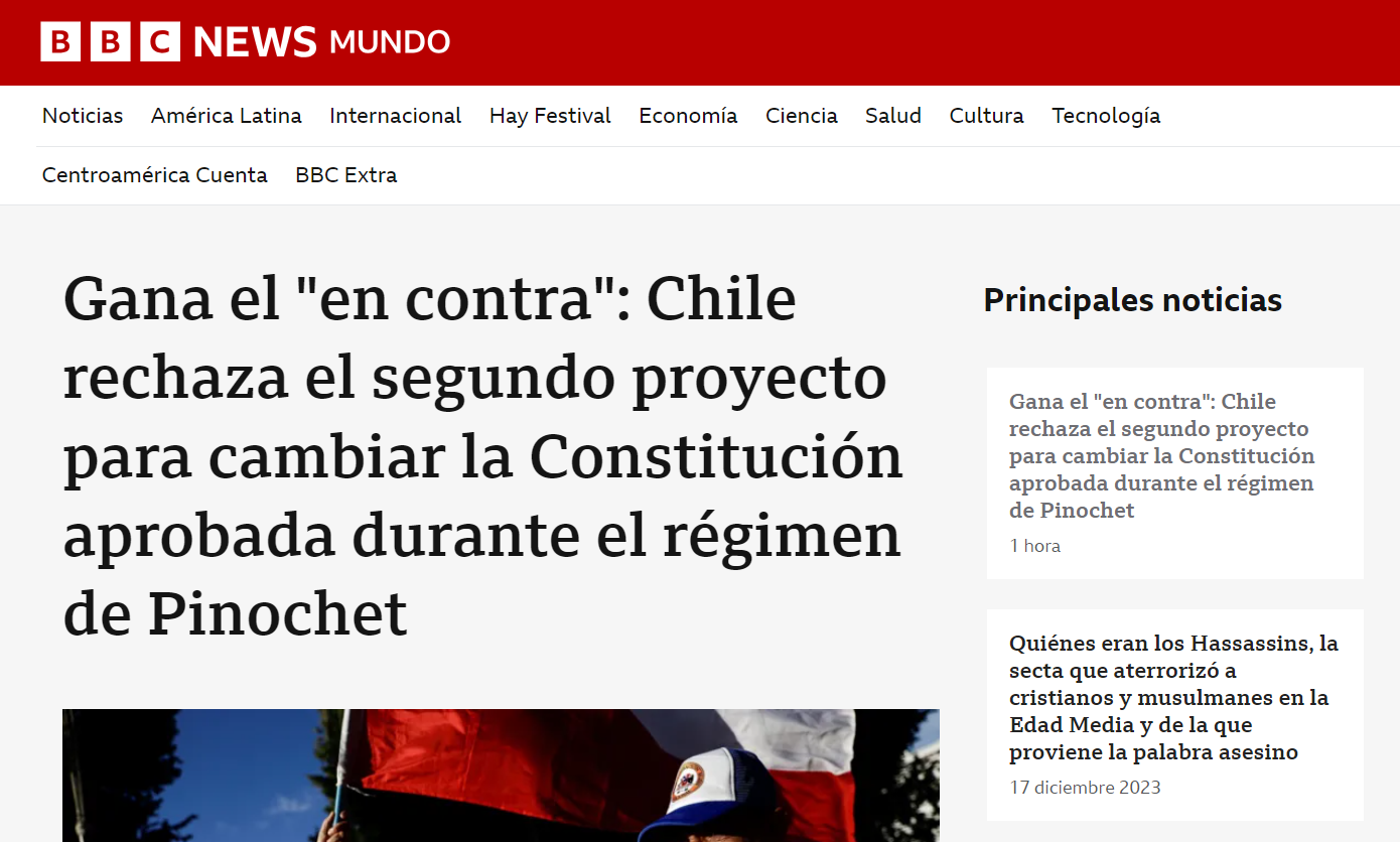 Diversos medios extranjeros cubrieron el proceso democrático que se llevó a cabo en nuestro país, donde la población decidió estar “En Contra” de la propuesta de Nueva Constitución.