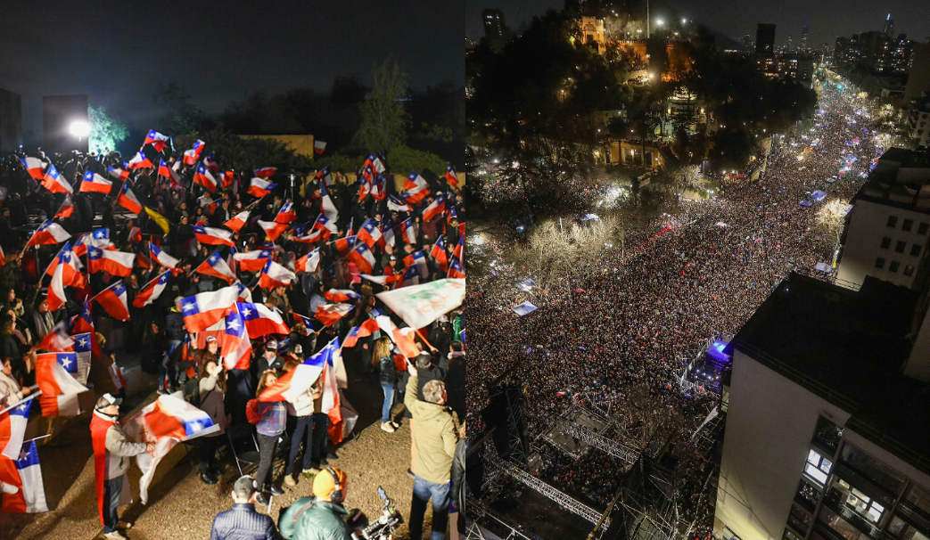 Por su parte, adherentes del Rechazo protagonizaron un banderazo en el anfiteatro Pablo Neruda del Parque Metropolitano de Santiago, hasta donde llegaron los movimientos ciudadanos de dicha opción.