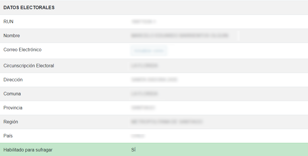 En ese sentido, el Servicio Electoral (Servel) tiene habilitado su sistema para que los ciudadanos revisen toda su información y sepan si están habilitados o no para ejercer su deber cívico.