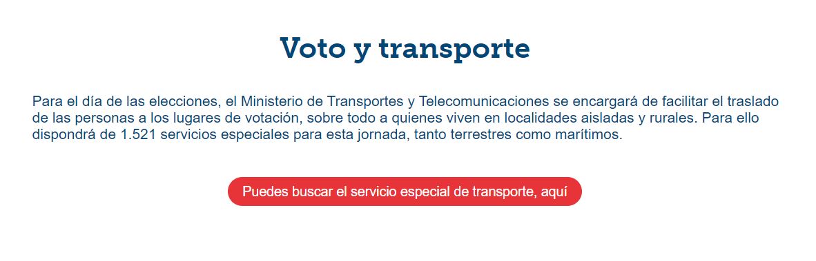 Para conocer las rutas de los servicios de transporte en las zonas rurales, se debe ingresar al sitio web www.tuvotodecide.cl y hacer clic en el botón que indica Voto y transporte.