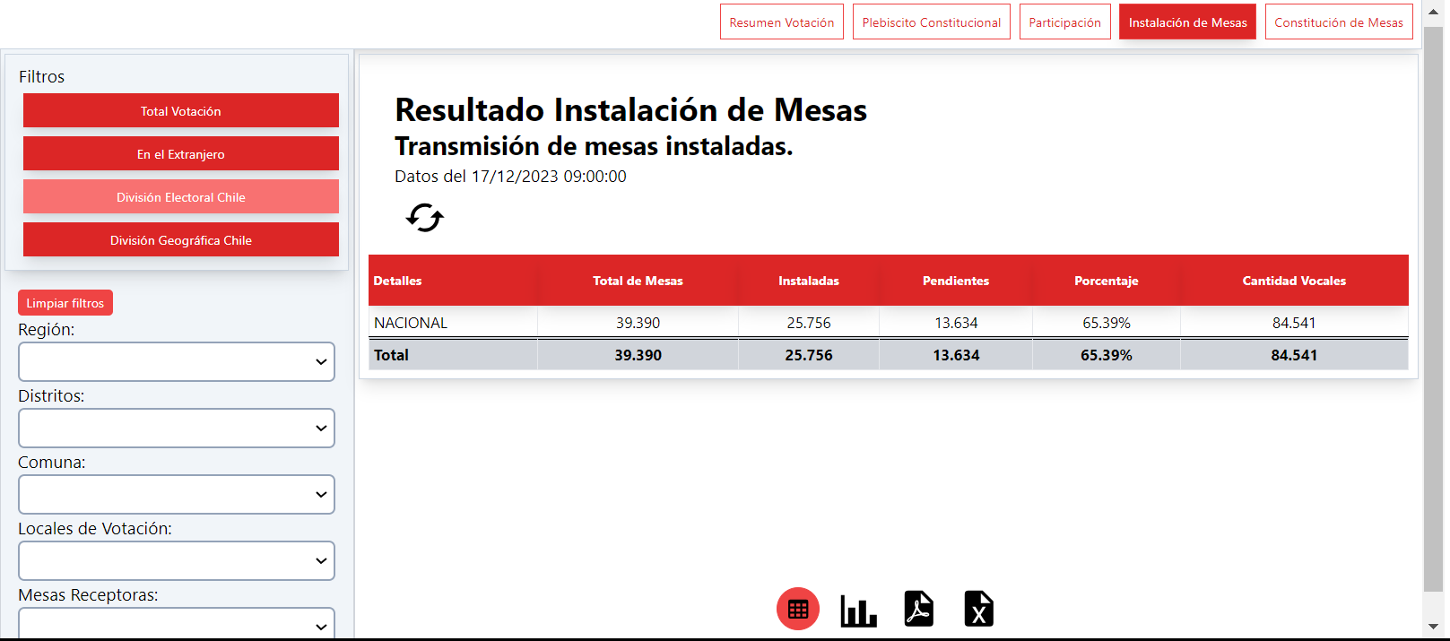 según la última actualización a las 09:00 horas, solo el 65,39% del total de mesas receptoras de sufragio están instaladas a nivel nacional.