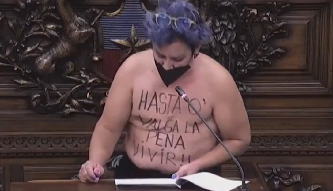 En el marco del segundo día del discurso de apertura de la CC, organismo encargado de escribir la nueva constitución, Pérez subió al estrado con el torso desnudo y con un mensaje escrito en su cuerpo que decía "hasta que valga la pena vivir".