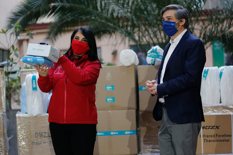 Equipamientos sanitarios y médicos que serán destinados a 319 hogares de larga estadía de la Región Metropolitana, fueron donados este jueves por la Fundación Telefónica Movistar.