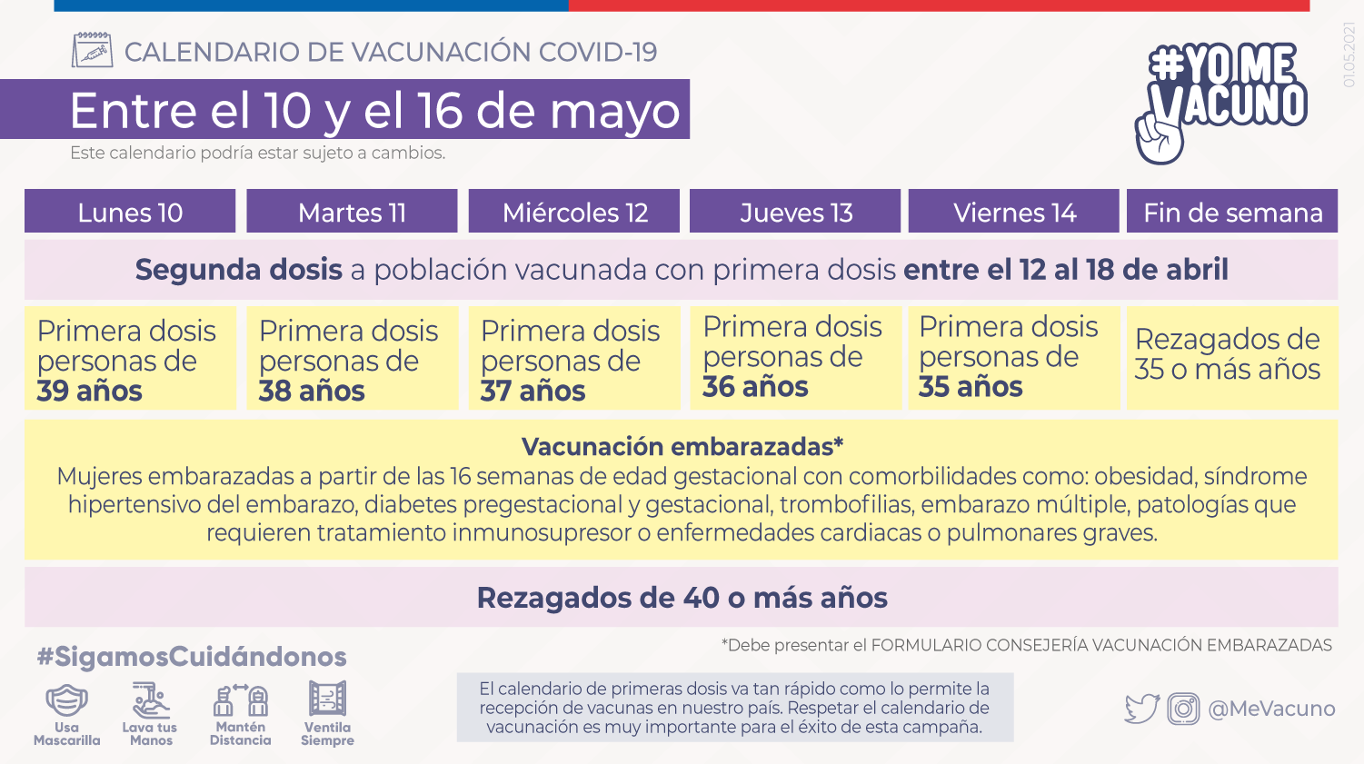 El calendario comienza a aproximarse a los más jóvenes, siento durante los próximos días el turno de las personas entre 39 y 35 años.