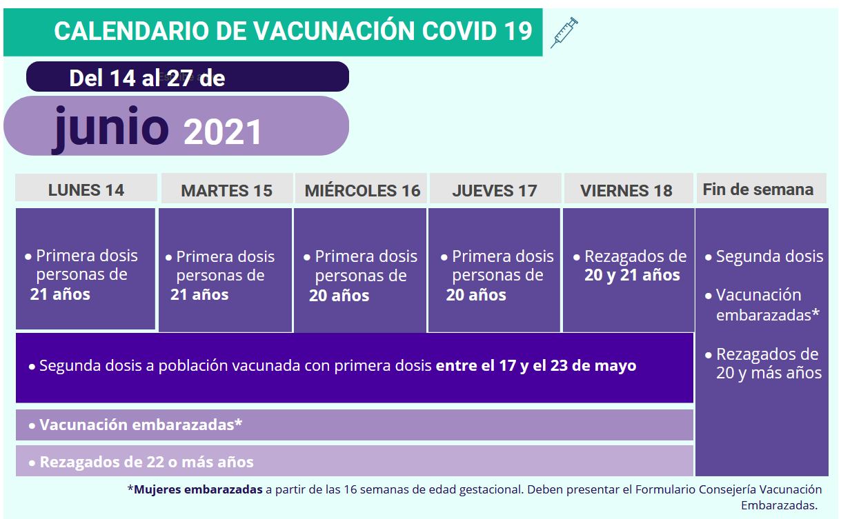 En medio de esto, las autoridades dieron a conocer el calendario de vacunación entre el 14 y el 20 de junio.