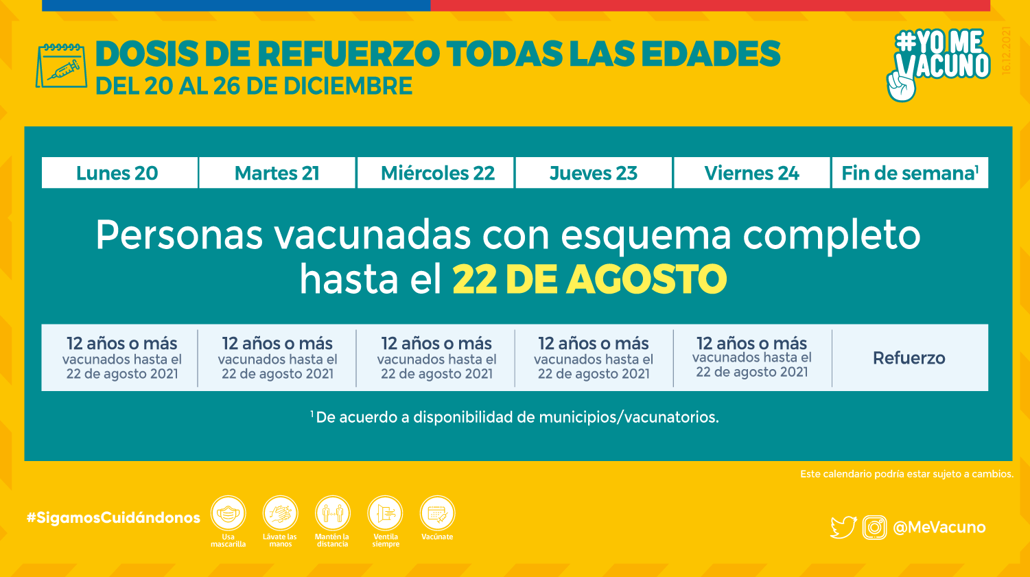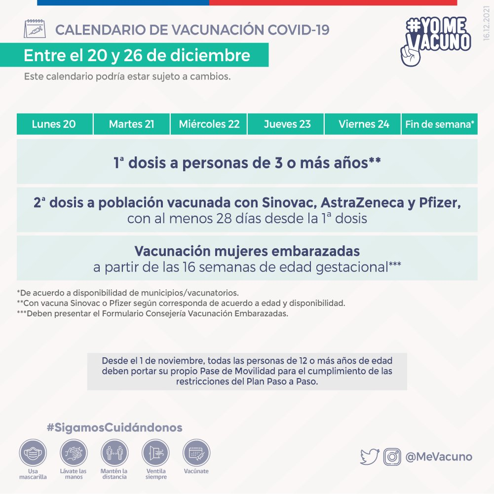 En tanto, sigue la autorización para todos los rezagados que aún no se han colocado la primera dosis a partir de los 3 años, lo que también corre para los que aún deben ponerse la segunda dosis y las mujeres embarazadas a partir de las 16 semanas de edad gestacional.