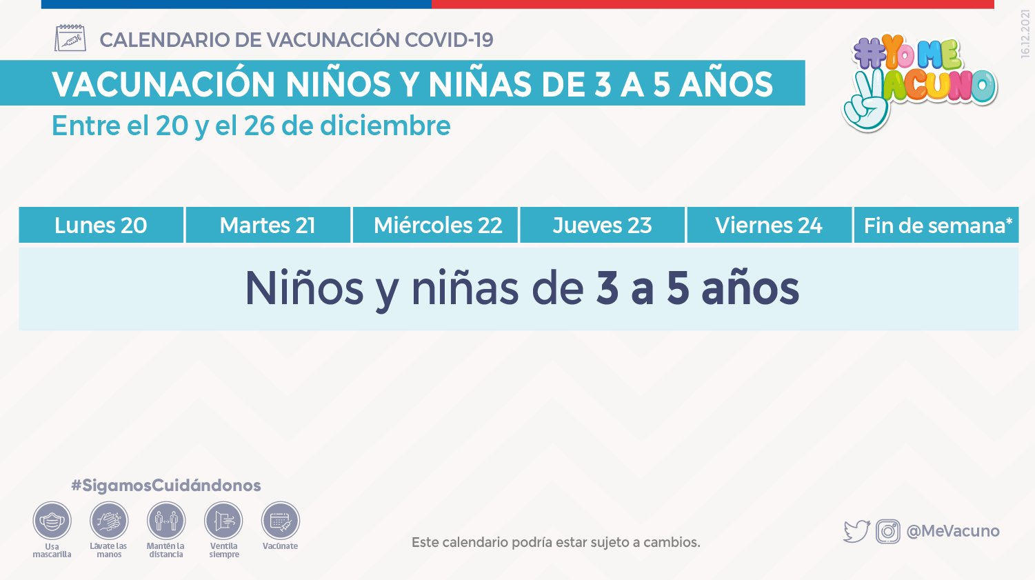 Paralelamente, se determinó que continúe la vacunación en el rango de 3 a 5 años, a quienes pueden administrarle únicamente Sinovac según la autorización del ISP, proceso que se realizará de aquí hasta el domingo.