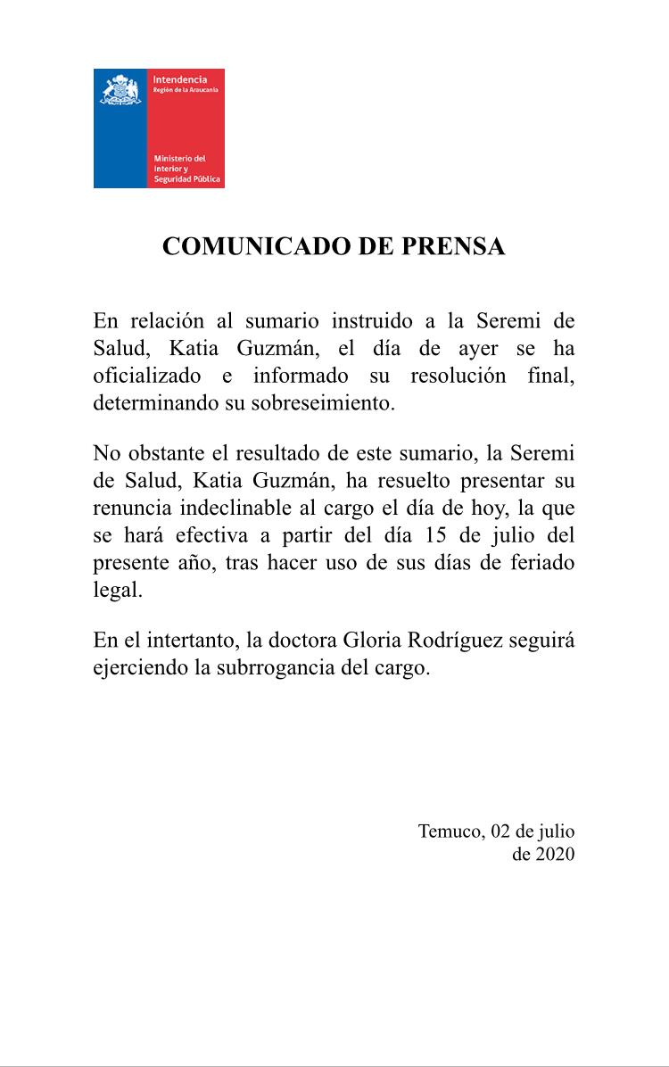 Seremi de Salud Araucanía renuncia tras ser sobreseída en sumario que la vinculaba a brote de Covid