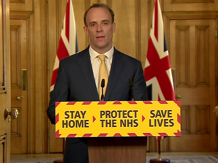 Dominic Raab, ministro de Relaciones Exteriores británico y primer secretario de Estado, que quedó a cargo al mando en ausencia de Boris Johnson, informó que el primer ministro continúa luchando por su salud.