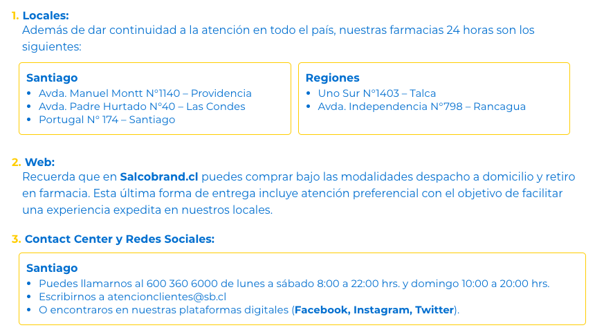 El listado de los horarios de todos los locales de Salcobrand lo puedes revisar aquí.
