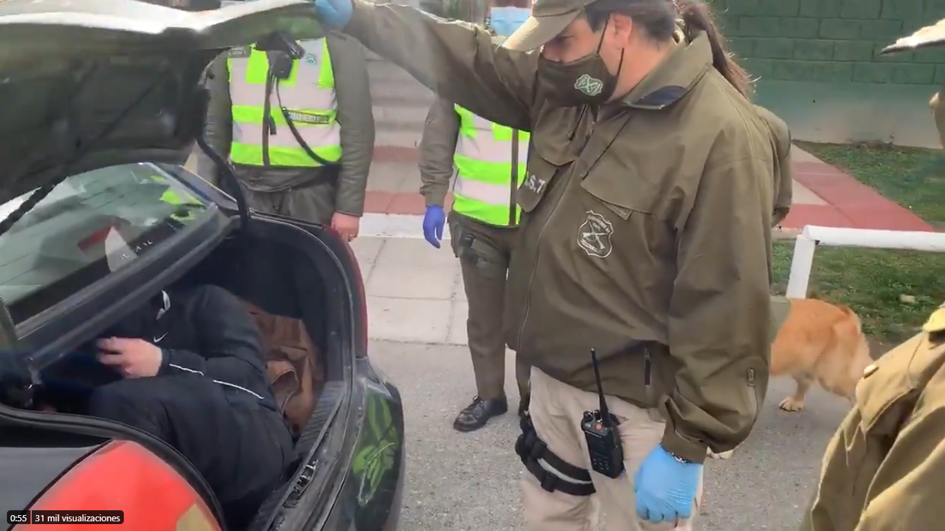 Carabineros lo sorprendieron oculto en el maletero de un taxi colectivo. Esto tras ser detectado en un control en la ruta por un perro policial.