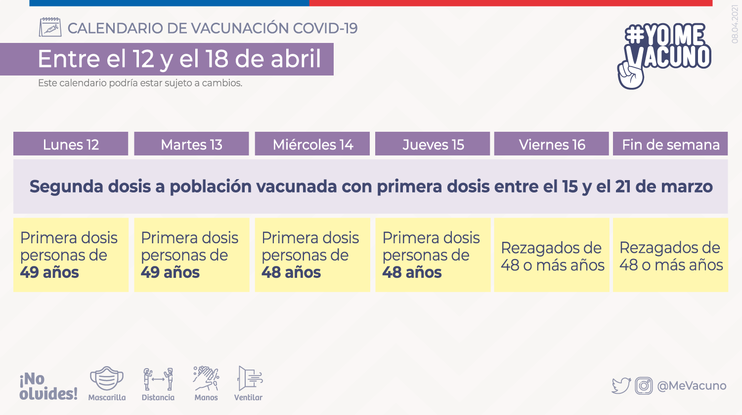 Este jueves 15 de abril continúa la vacunación contra el COVID-19 de quienes tengan 48 años, personas que también pudieron acercarse a los centros de inoculación el miércoles.