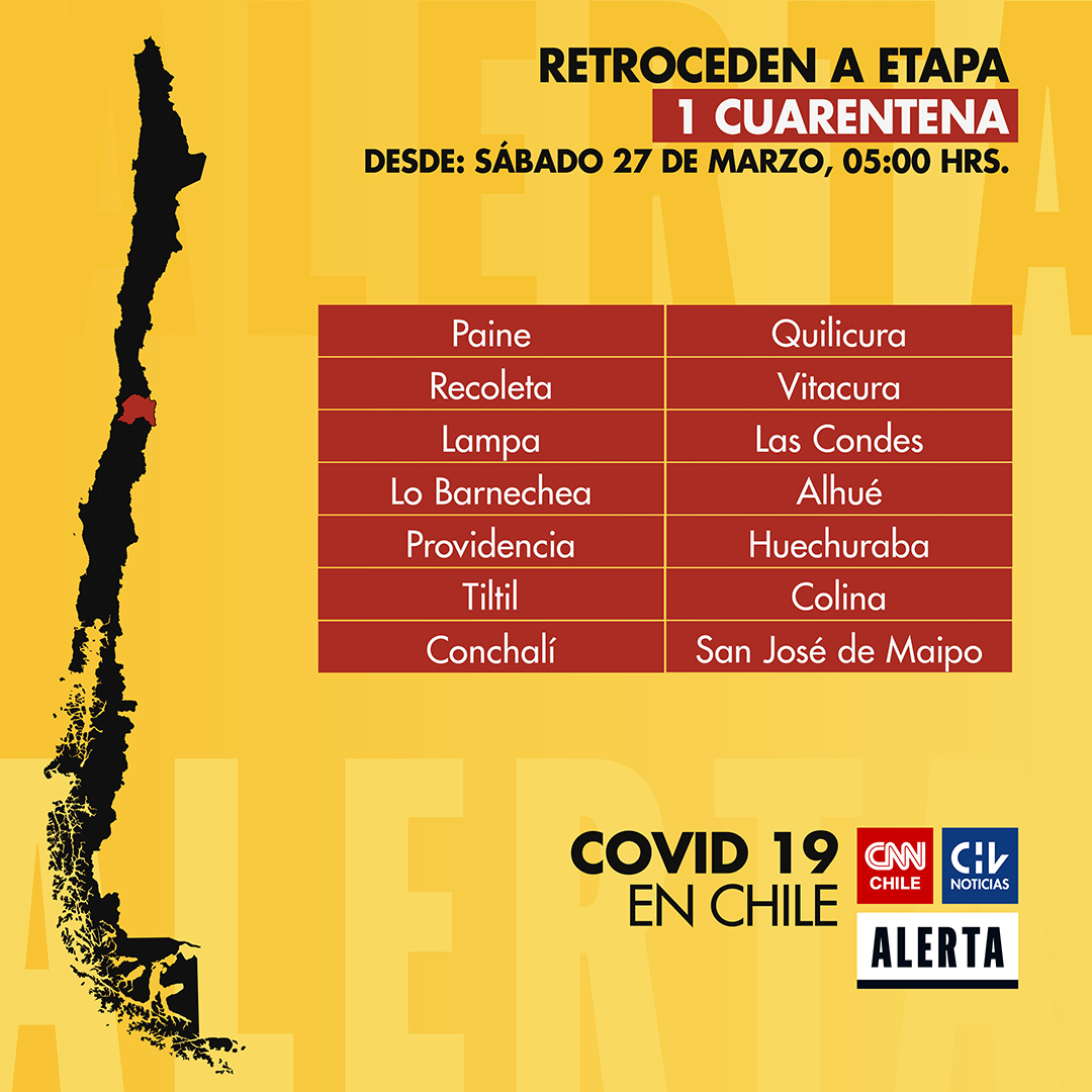 El Minsal informó de nuevas modificaciones en el Plan Paso a Paso. Para las comunas que retroceden, comenzarán a regir a partir de este sábado 27 de marzo a las 05:00 de la mañana, mientras que las que avanzan lo harán el lunes 29 en el mismo horario.