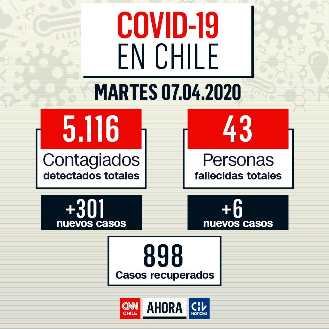 El ministro de Salud, Jaime Mañalich, informó este martes que durante la última jornada en el país se registraron 301 casos nuevos por coronavirus lo que suma un total de 5.116 contagiados.