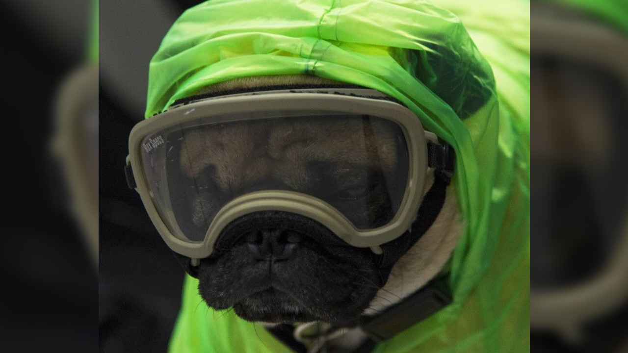 VIDEO: Wearing tiny yellow boots, goggles and a protective suit, Harley "el Tuerto" -- a pug trained as a therapy dog -- begins a new journey to relieve the stress of medical staff fighting the novel coronavirus at a Mexico City hospital 🐶 pic.twitter.com/TalvaGRUDo