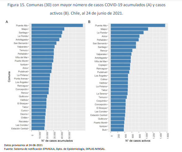 Sin embargo, en el informe anterior eran cuatro las comunas de la RM que superaban los mil casos, mientras que ahora son sólo dos.