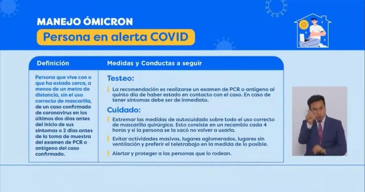 Este lunes el Ministerio de Salud anunció que los casos positivos por COVID-19 tendrán que notificar por cuenta propia a sus contactos estrechos. De esta manera, las personas que han tenido contacto a menos de un metro de distancia sin el uso correcto de mascarilla, además de las personas con las que cohabite serán declaradas como "Alerta Covid".