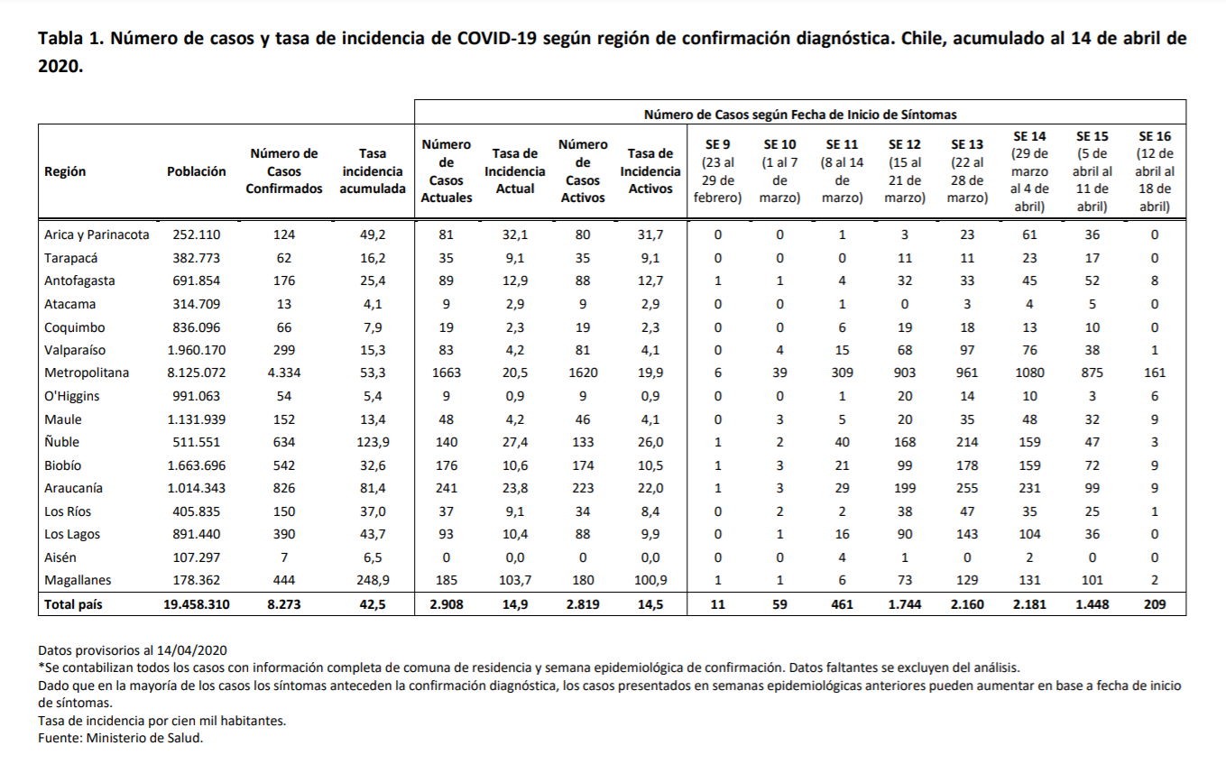 Este viernes, el Ministerio de Salud publicó el octavo informe epidemiológico sobre la propagación del coronavirus, el cual entrega un análisis descriptivo de los casos notificados en todo el país hasta las 21:00 horas del 15 de abril.