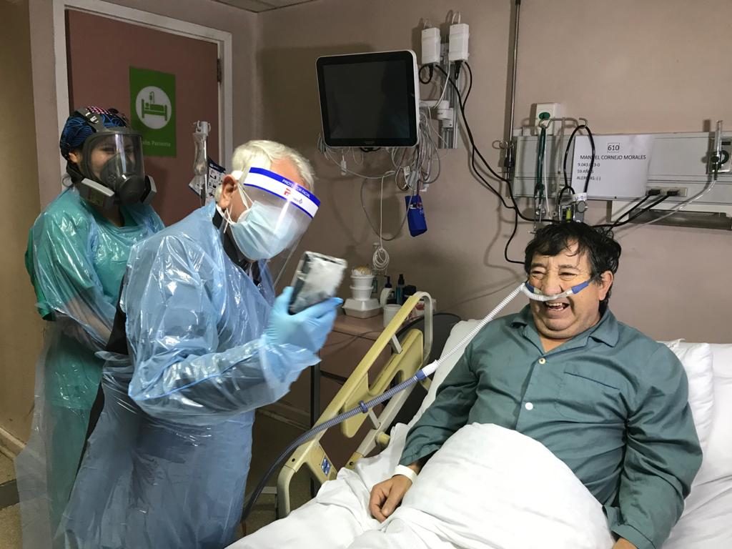 En los recintos hospitalarios de Santiago se ha dispuesto de un sistema de comunicación por videollamadas, para que los pacientes afectados con COVID-19 puedan tener contacto con sus seres queridos.
