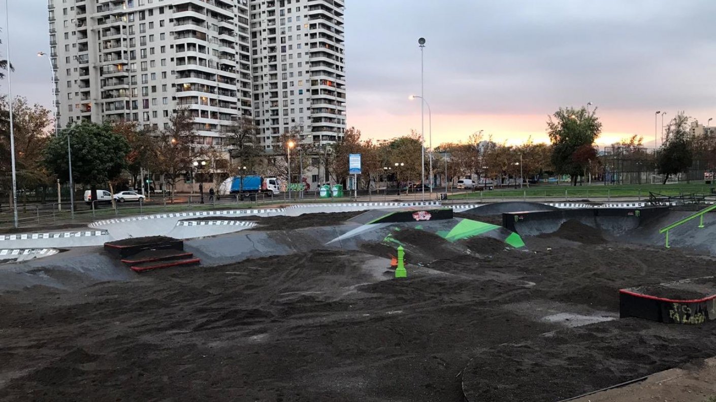 El skatepark ubicado en pleno Parque de Los Reyes, en la comuna de Santiago, amaneció por estos días tapado de tierra.