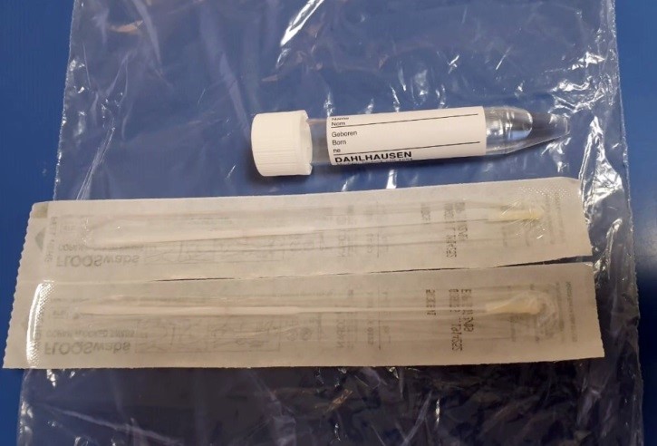 Los funcionarios de la Dirección General de Aeronáutica Civil (DGAC) revisan de manera visual cada test dentro de un recipiente metálico en un cooler sellado que se embarca al avión para ser trasladado a Santiago.