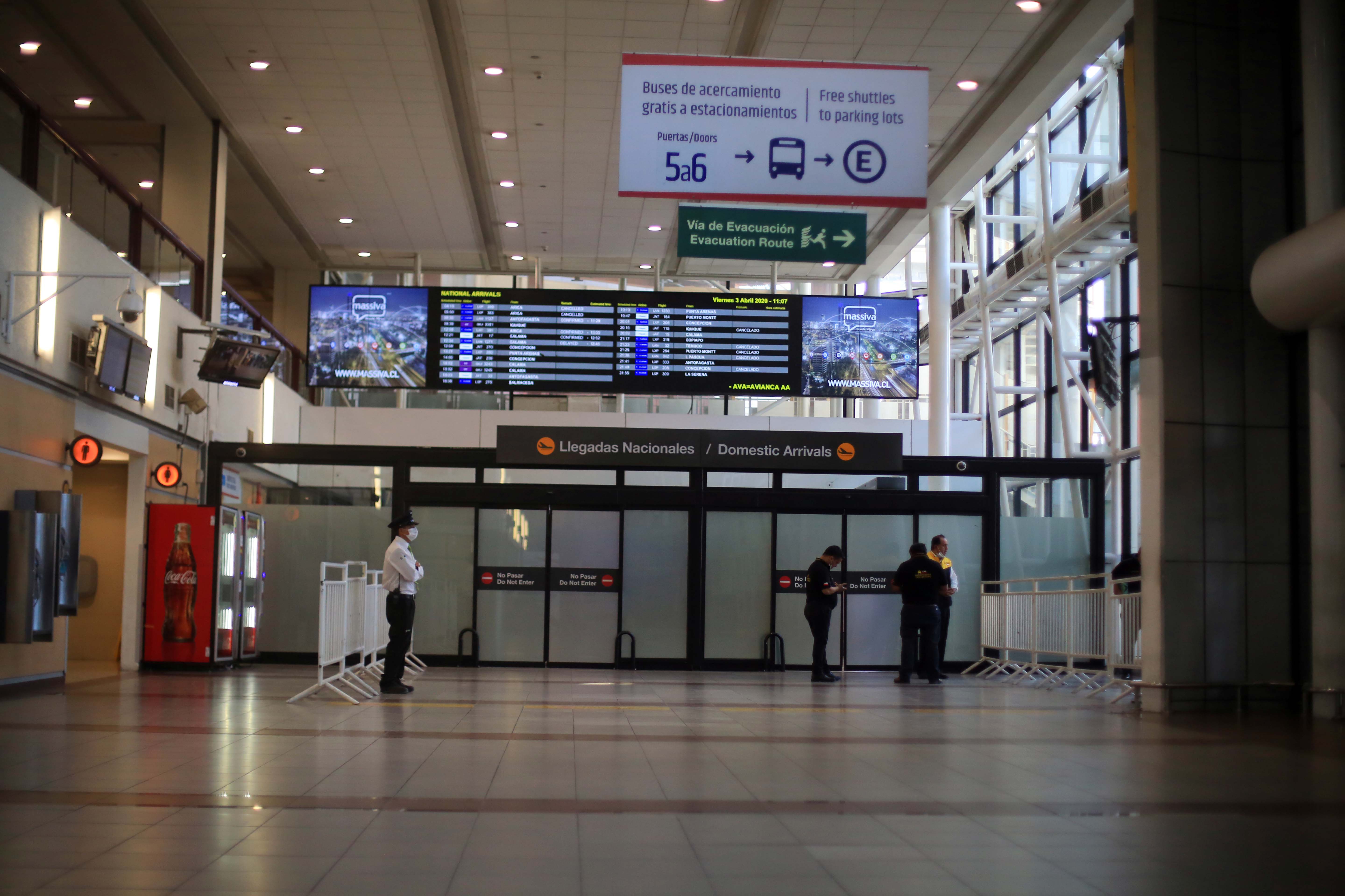 Lee también: Máximo 20 personas y sin fotos ni flores: Los solitarios funerales de los muertos por COVID-19Su trabajo también consiste en controlar a los pasajeros en el aeropuerto que, si bien ha reducido sus operaciones, aún sigue funcionando con un alto flujo de pasajeros nacionales y extranjeros.