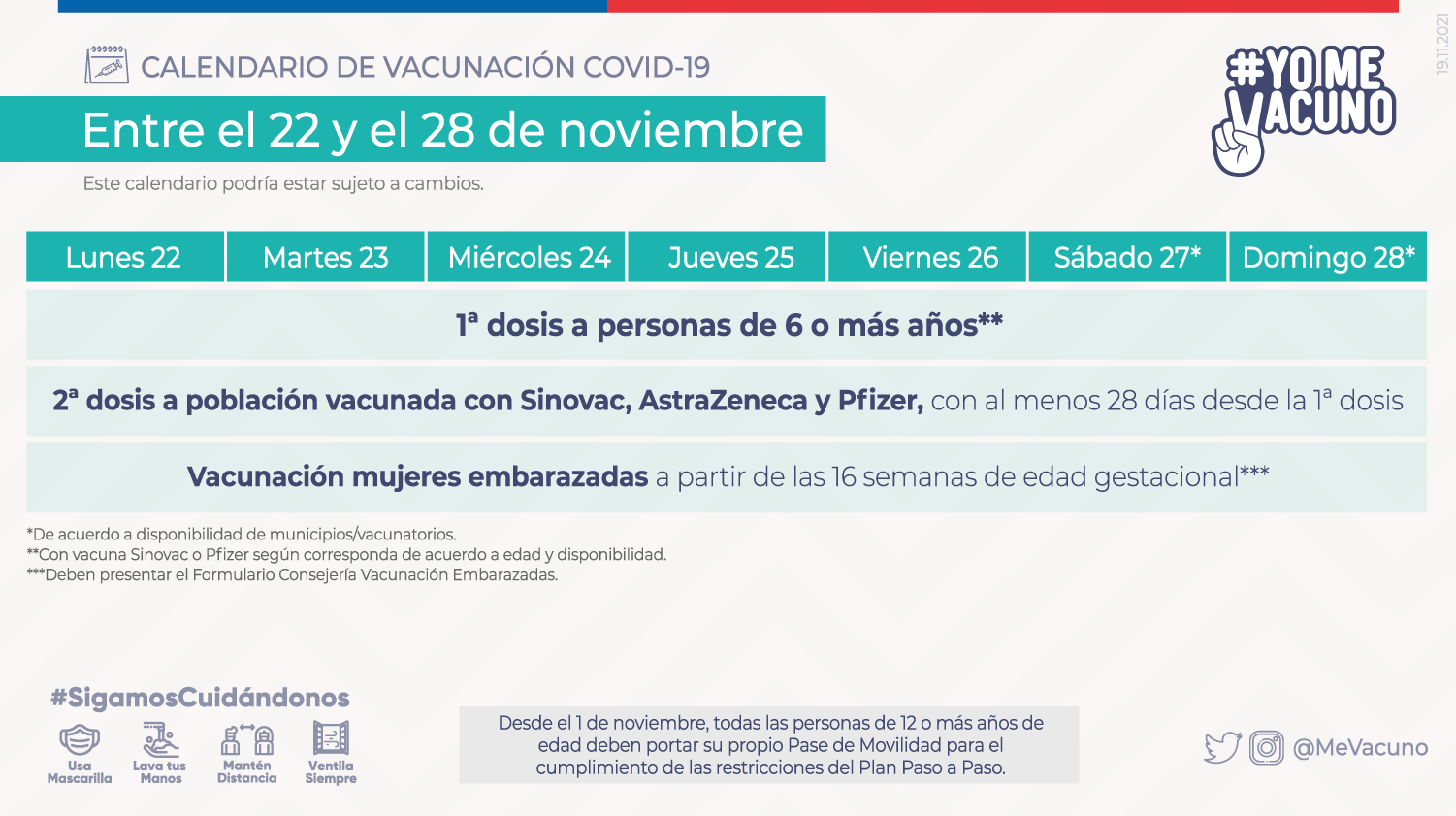 En este marco, este 25 de noviembre es el turno de las personas de edades entre 20 y 24 años que completaron anteriormente su esquema en una fecha anterior al 27 de junio con una vacuna distinta a Sinovac.