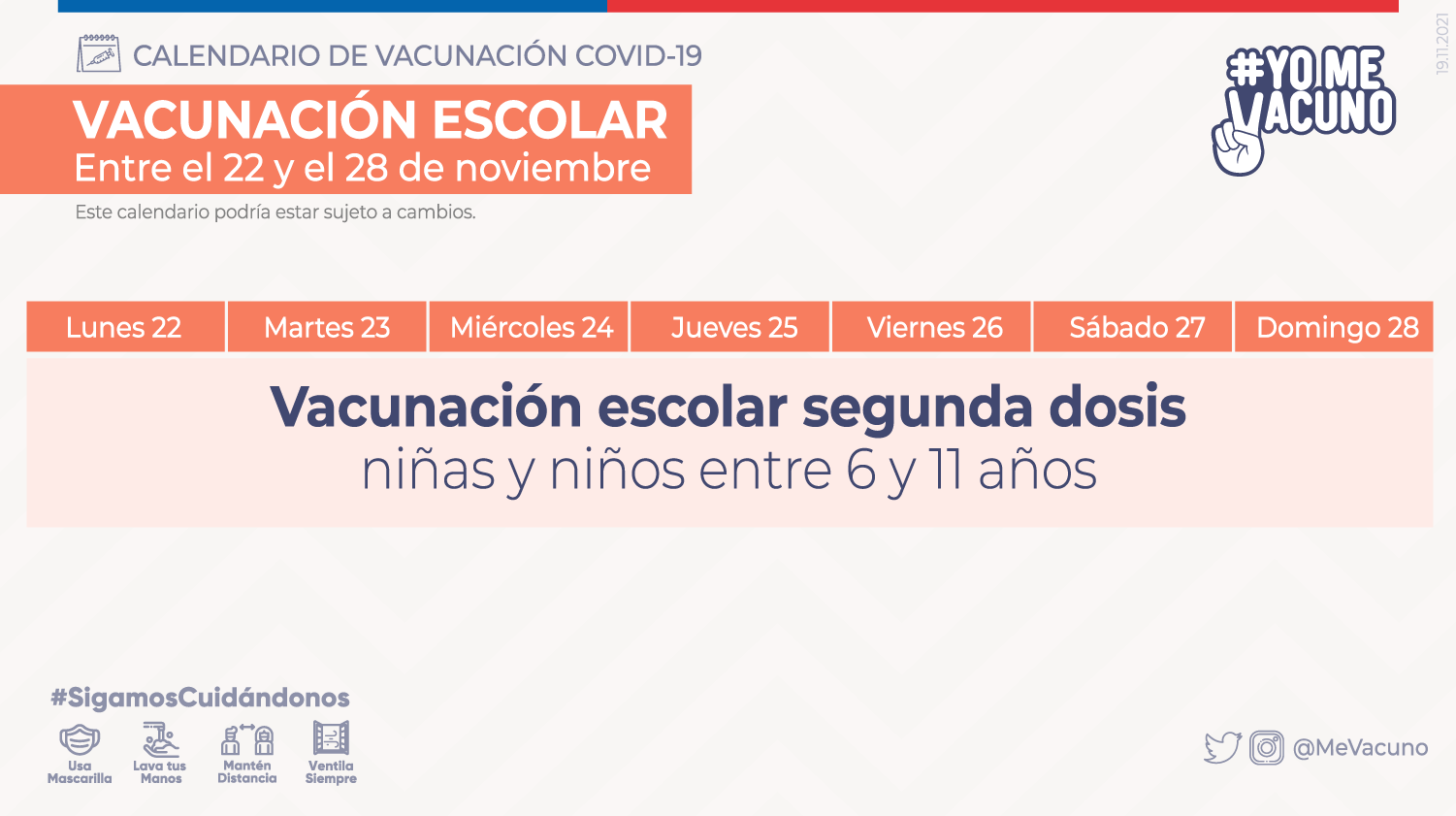 Durante los últimos días se actualizó el calendario de vacunación en los niños de entre 6 y 11 años, quienes ya están recibiendo su segunda dosis según lo señalado por el Minsal.