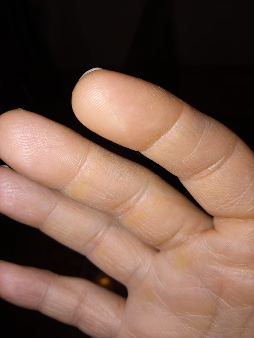 Bárbara Cabrera, trabajadora de una multitienda, cuenta que debido a su trabajo debía lavarse las manos constantemente, por lo que se le comenzaron a secar, luego a picar y arder. Aparecieron heridas en su dedo índice y decidió acudir a un especialista.